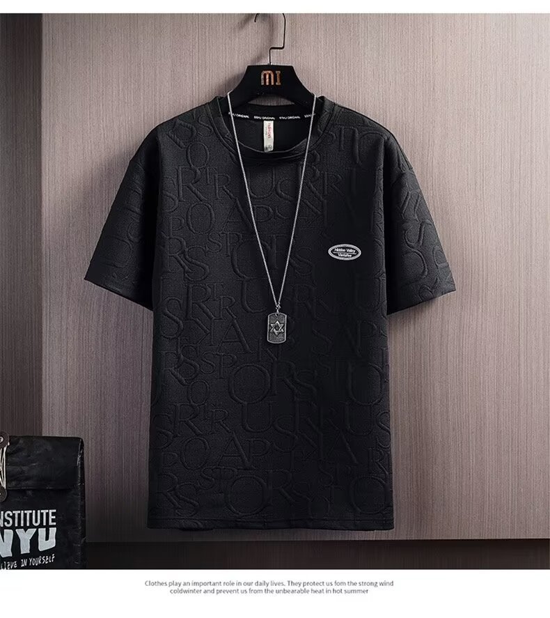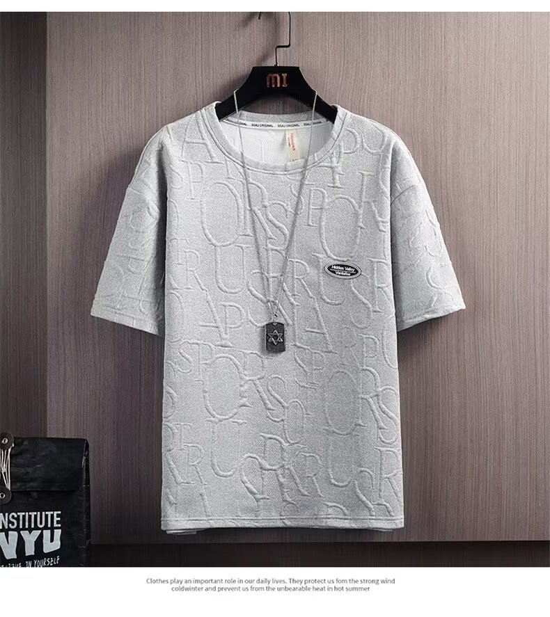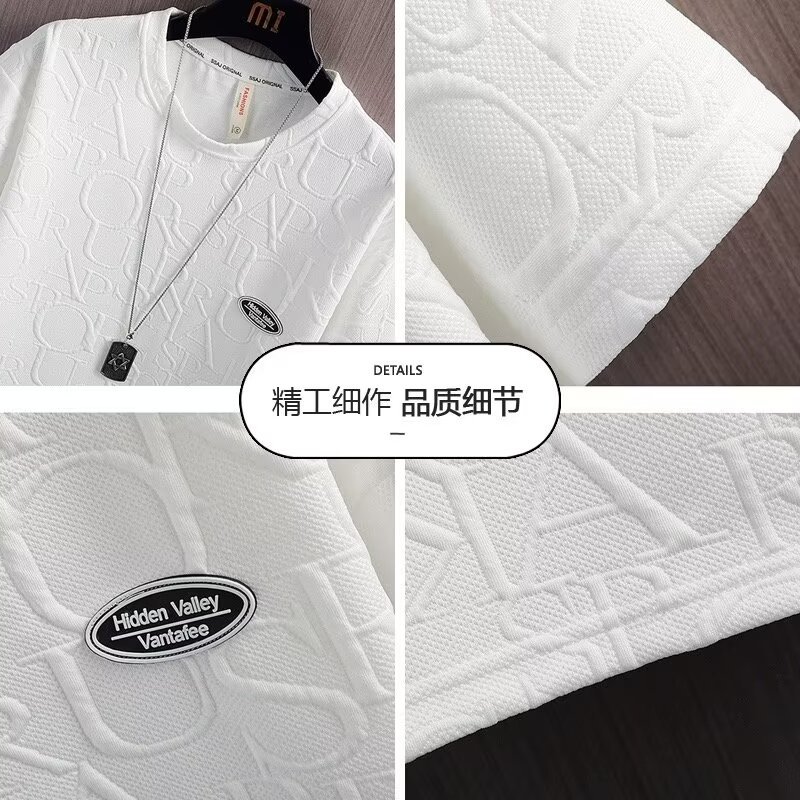 여름 세트 남자 트렌디 한 올 매치 솔리드 컬러 캐주얼 반팔 티셔츠 Waffe 탑 한국 스타일 트렌디 브랜드 Ins 5 길이 바지스토어 가기