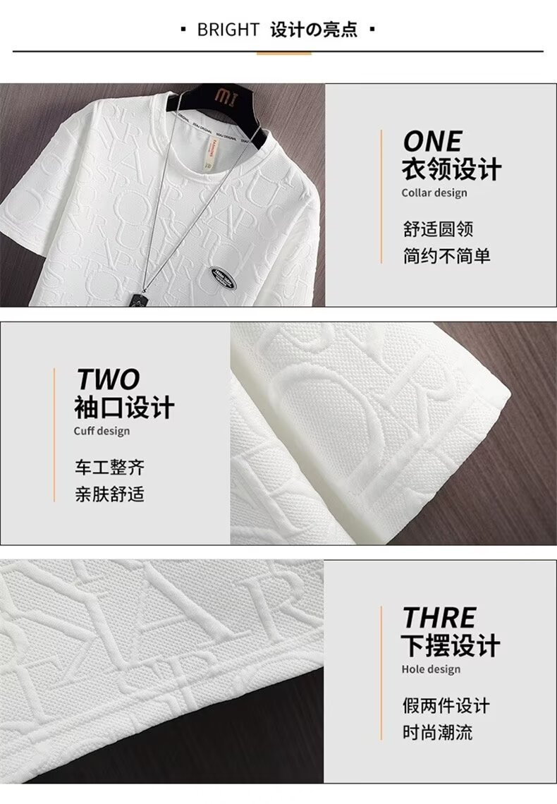 여름 세트 남자 트렌디 한 올 매치 솔리드 컬러 캐주얼 반팔 티셔츠 Waffe 탑 한국 스타일 트렌디 브랜드 Ins 5 길이 바지