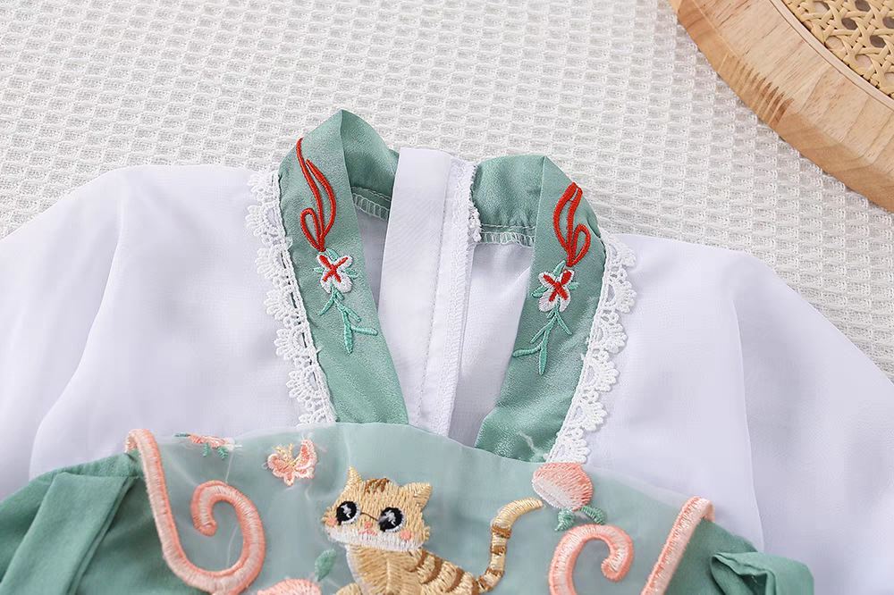 자수 한푸 소녀의 중국 스타일 봄 어린이 고대 스타일 슈퍼 요정 소녀의 중국 스타일 봄 여성의 보물 긴팔 중첩 소년
