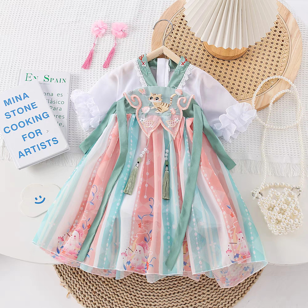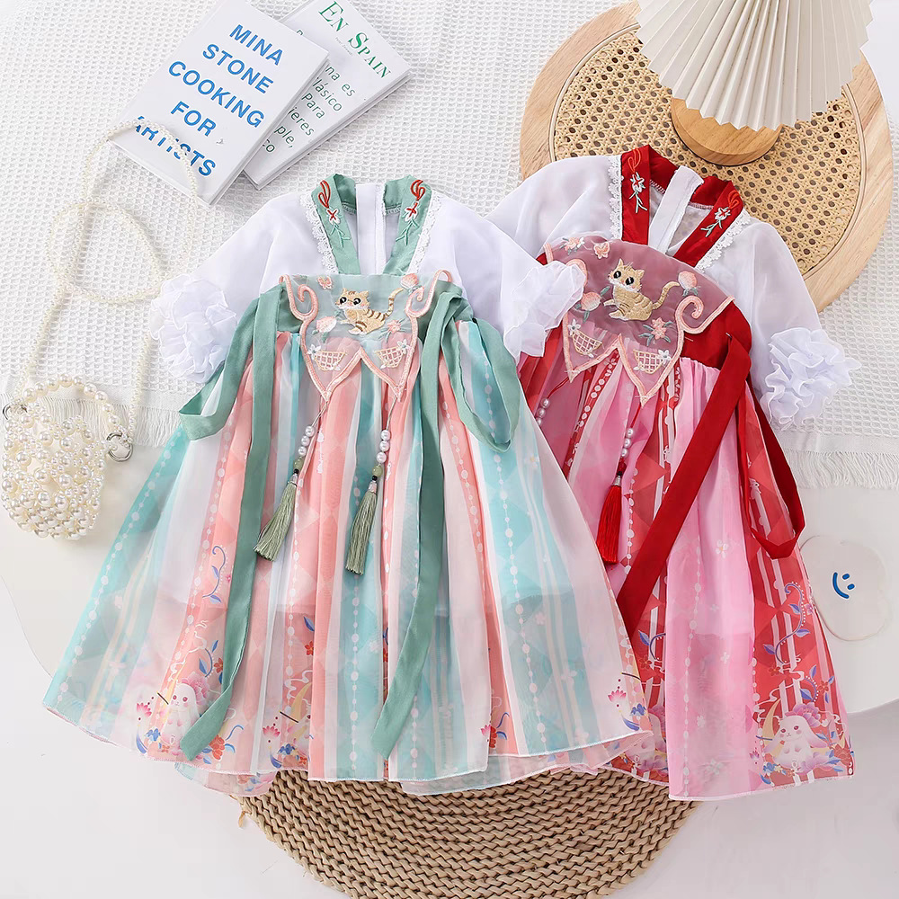자수 한푸 소녀의 중국 스타일 봄 어린이 고대 스타일 슈퍼 요정 소녀의 중국 스타일 봄 여성의 보물 긴팔 중첩 소년스토어 가기