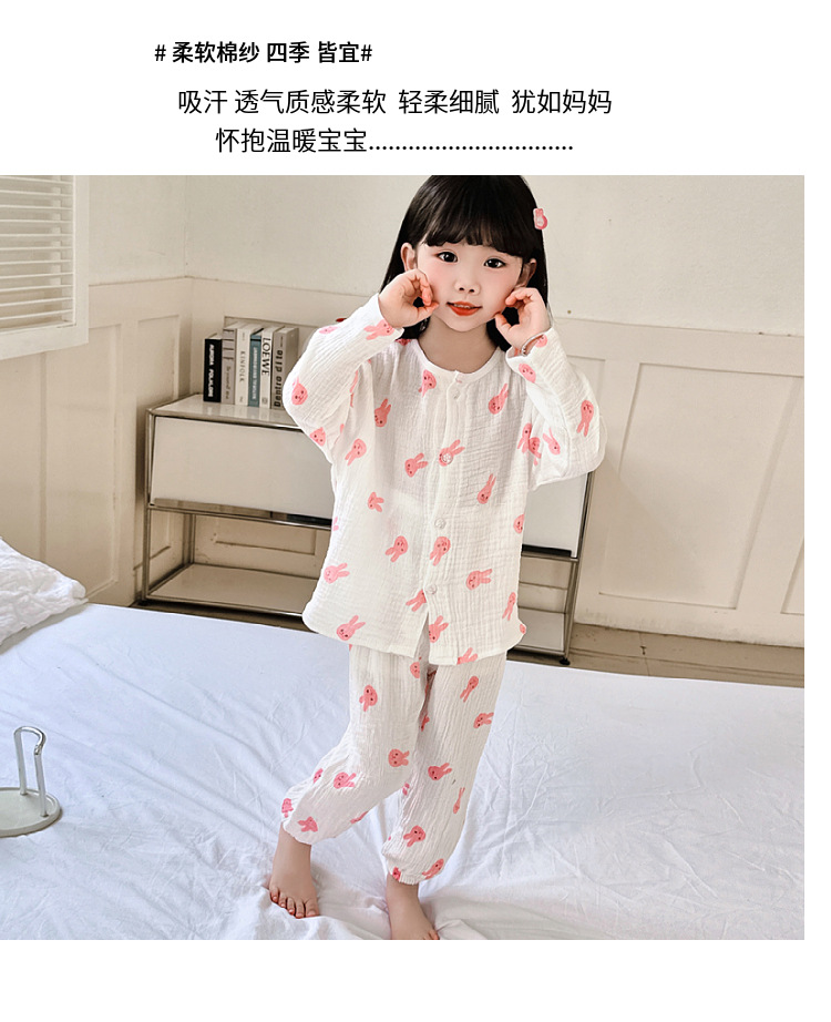 • 순면 더블 레이어 면사 에어컨 슈트 핑크 토끼