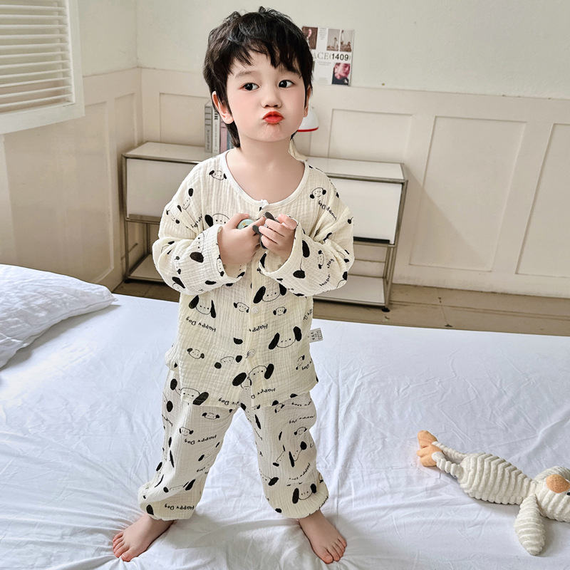 아기의 집 옷 얇은 더블 레이어 원사 파자마 두 조각 세트 소년의 면 원사 파자마 어린이 집 옷 만화 면화스토어 가기