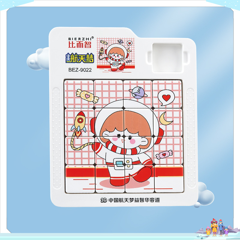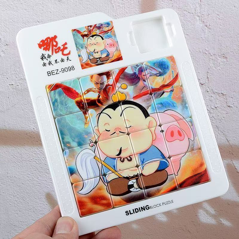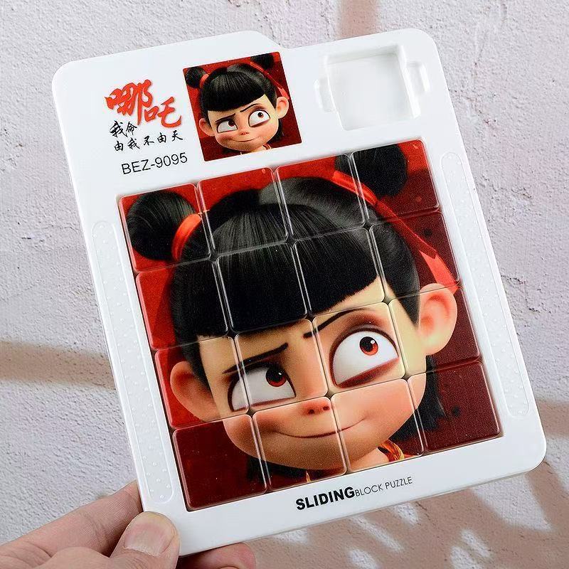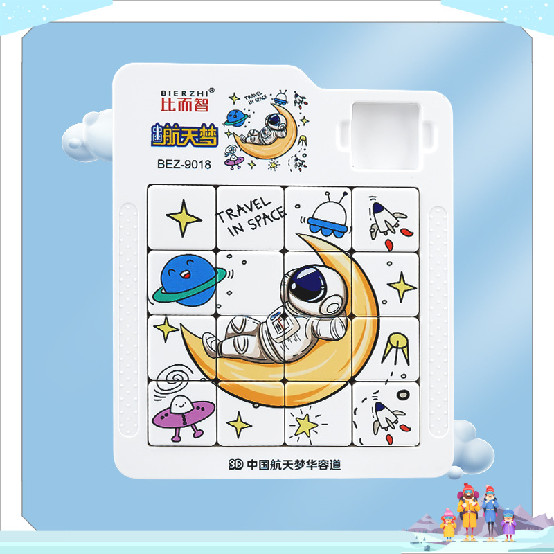 자석 어린이 만화 모바일 퍼즐 우주 슈퍼맨 슬라이딩 플라스틱 퍼즐 Huarong 도로 장난감 큰 16 궁전스토어 가기