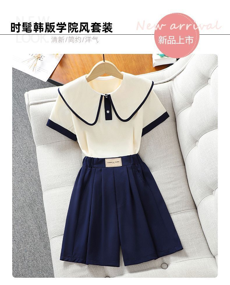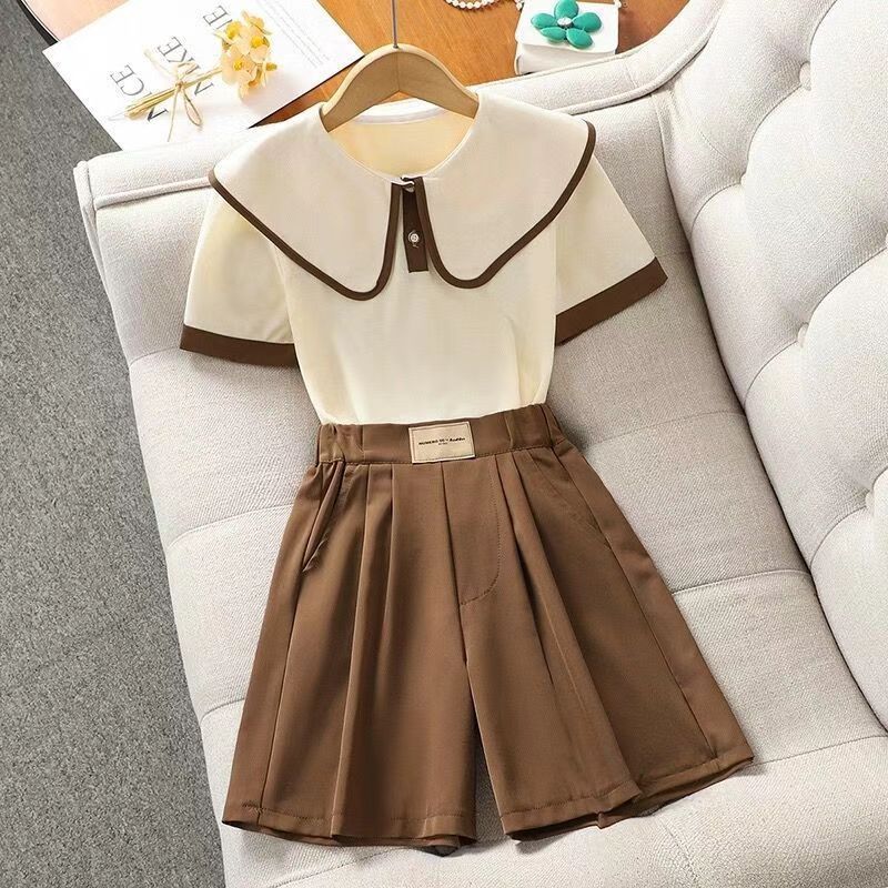여자 여름 인형 칼라 쉬폰 셔츠 반바지 투피스 세트 2025 새로운 한국 스타일 서양식 달콤한 세트스토어 가기