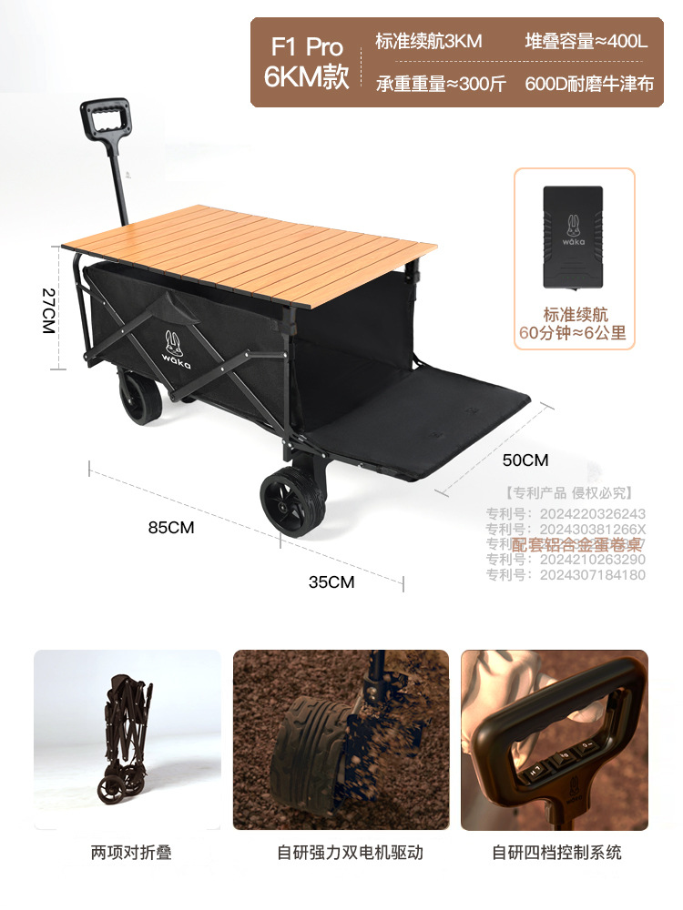 와카 F1프로 [전기 캠퍼] 야외 캠퍼 접이식 카트 캠프 도움말 손 풀 피크닉 트레일러스토어 가기