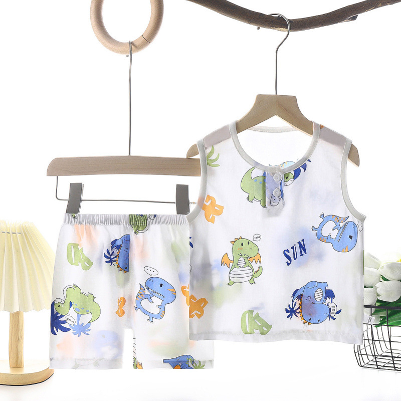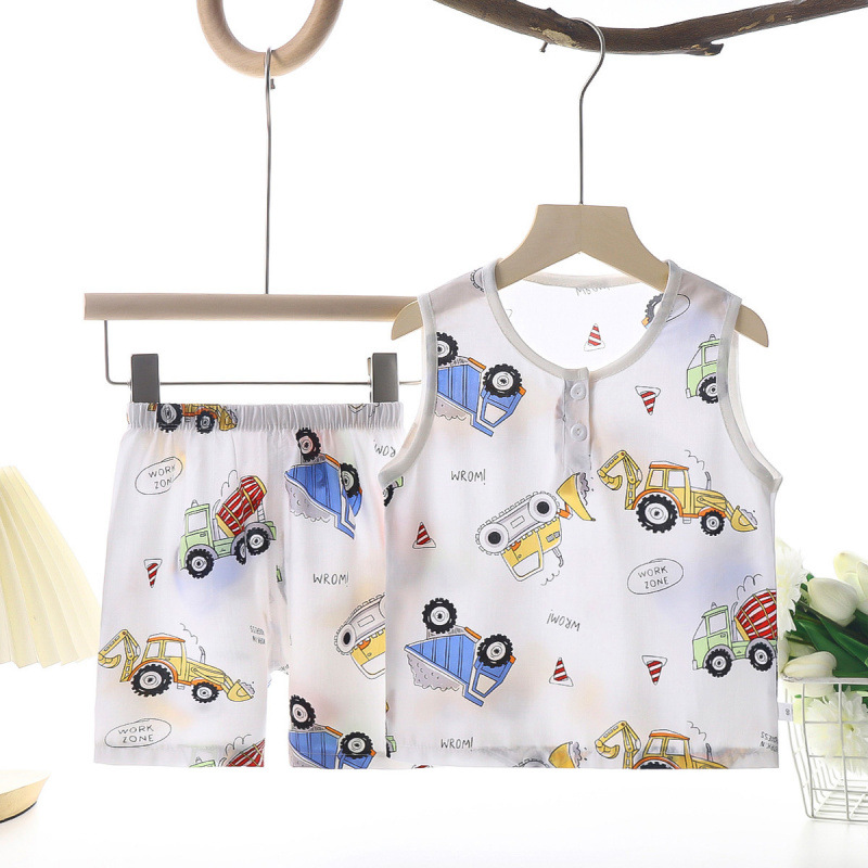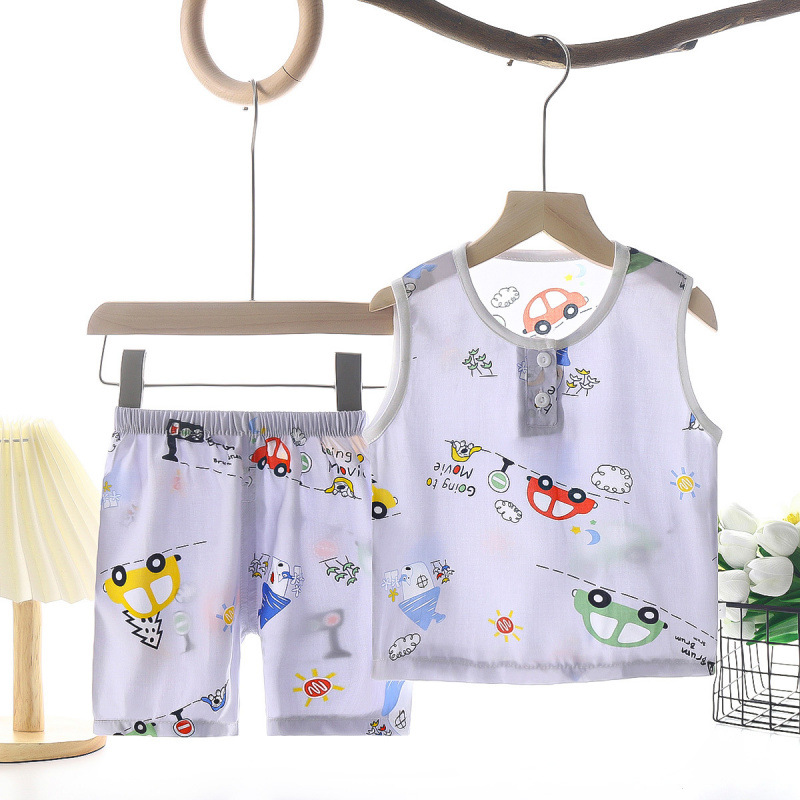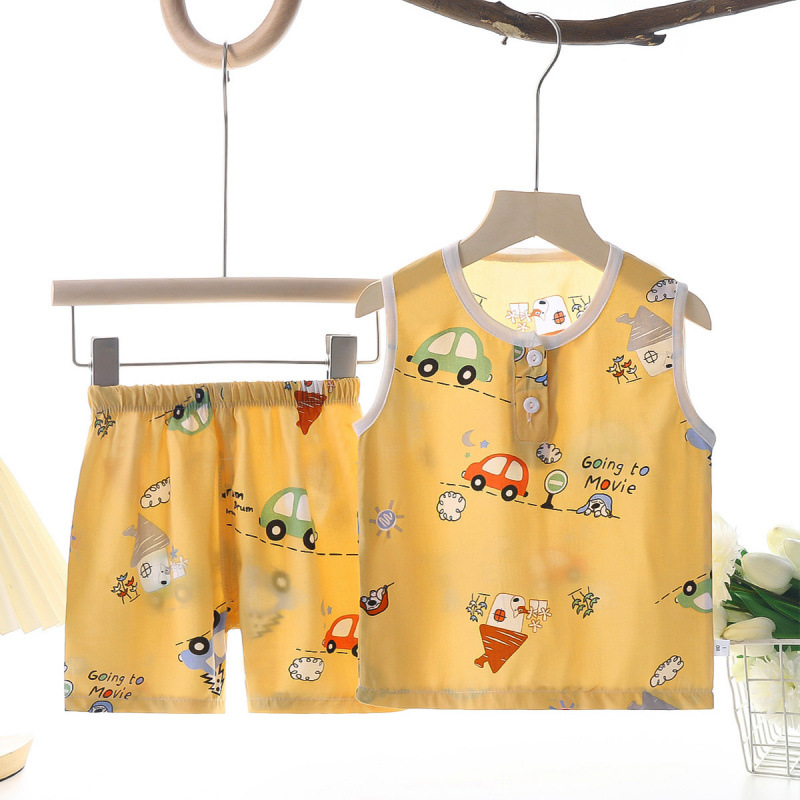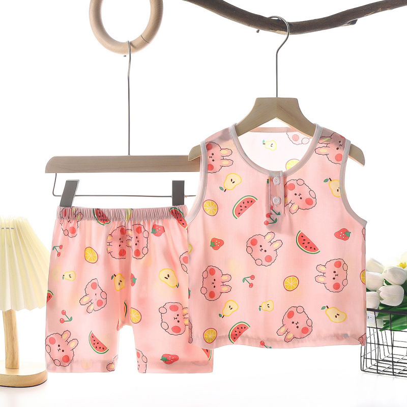 여름 어린이 조끼 세트 소년 소녀를위한 에어컨 세트 여름 반바지 면 실크 파자마 아기 옷 어린이 홈 옷스토어 가기