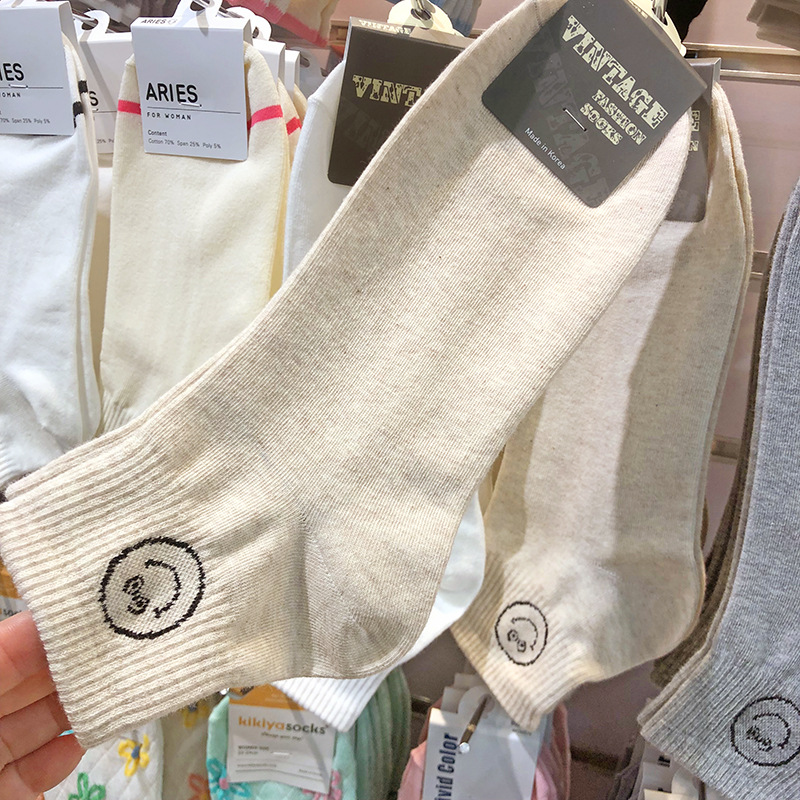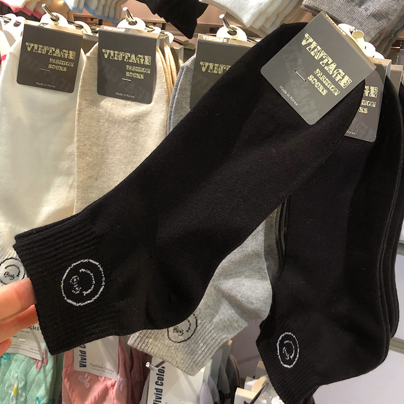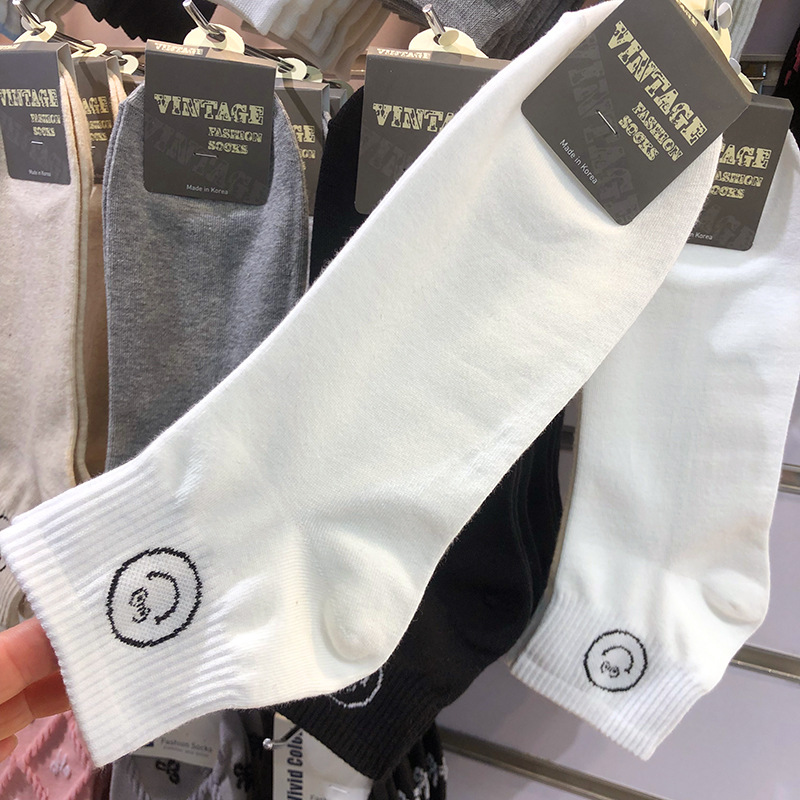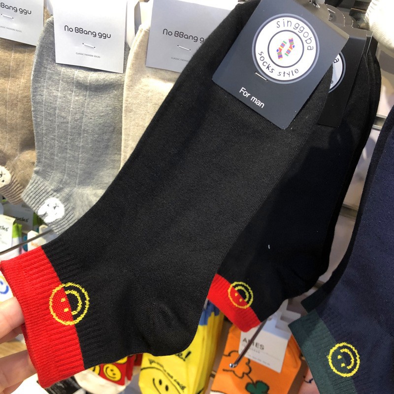 ETNA 봄 및 여름 새 양말 한국 수입 남성 양말 서클 스마일리 짧은 튜브 면 양말 땀 흡수 통기성 간단한 단색스토어 가기