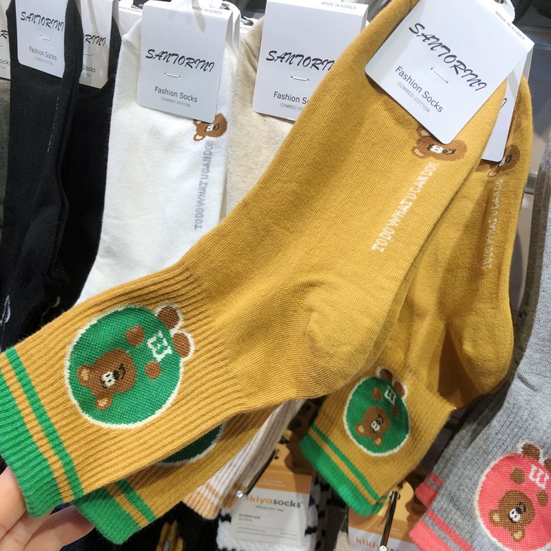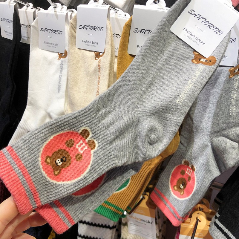 [재고] 한국 동대문 양말 애니메이션 서클 베어 걸스 코튼 양말 일본 투바 스트라이프 중간관 양말스토어 가기