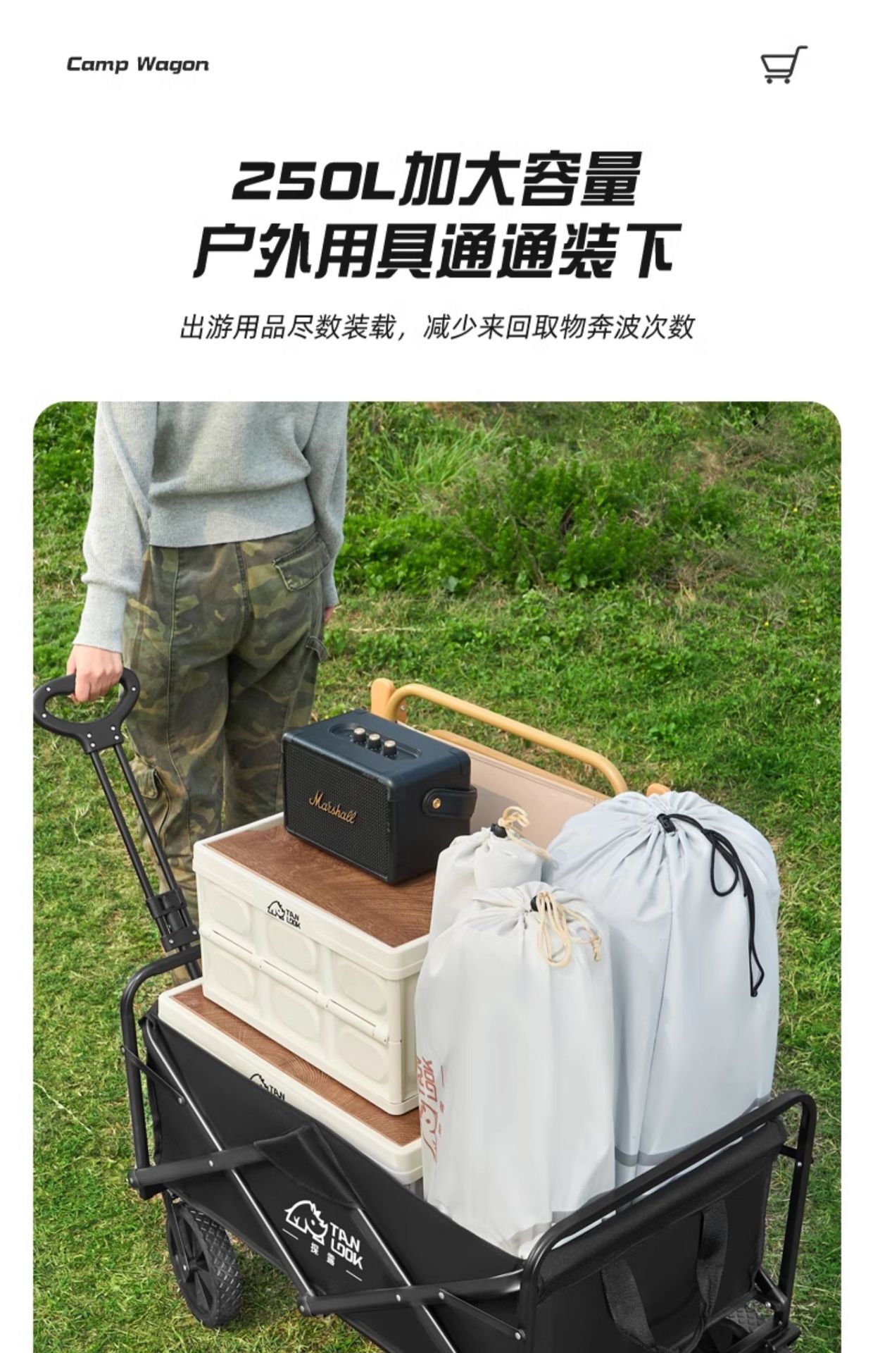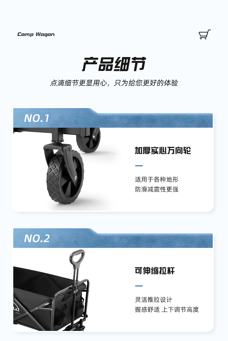 2025 새로운 캠핑 카트 야외 캠프 트레일러 조립 접는 손 푸시 피크닉 캠핑 카트 트롤리