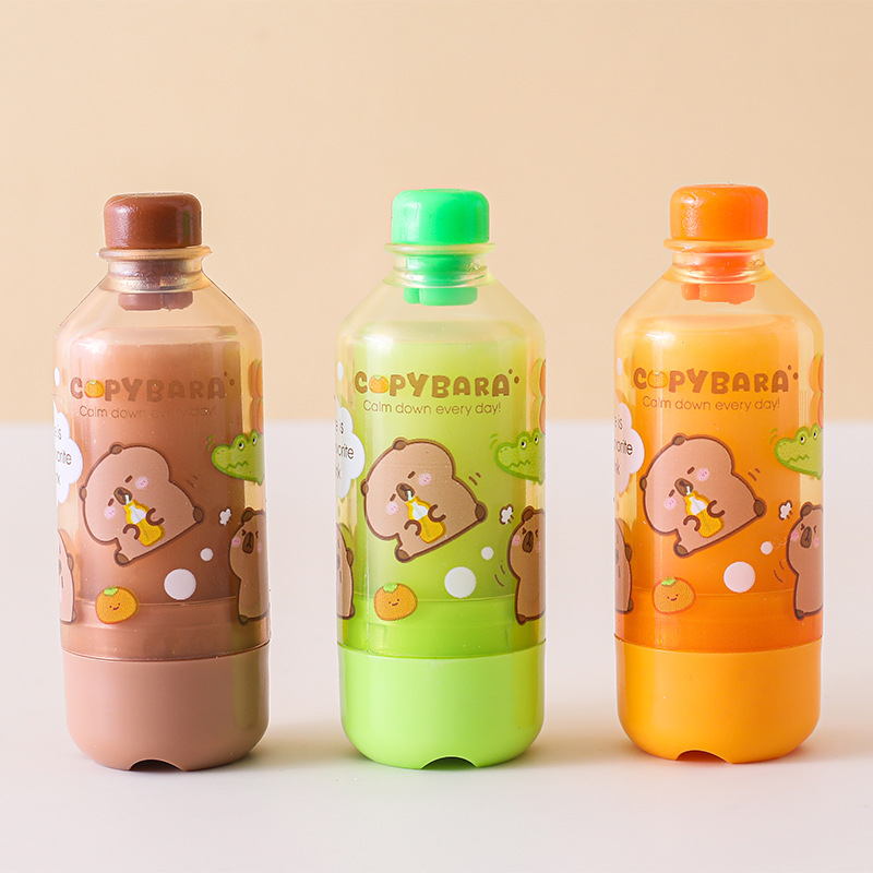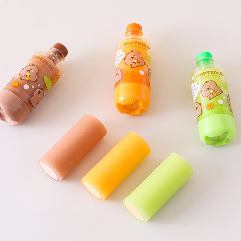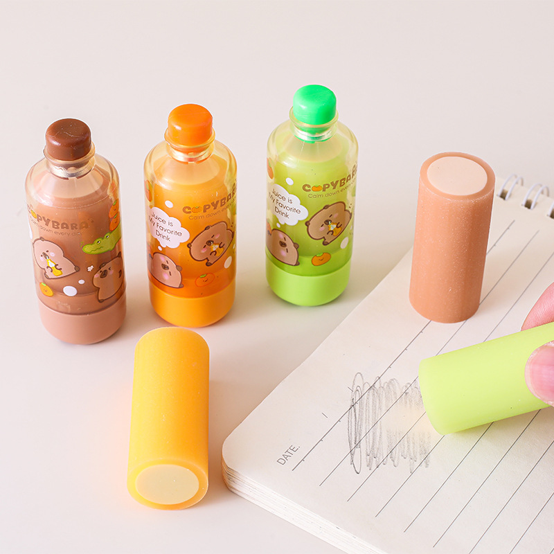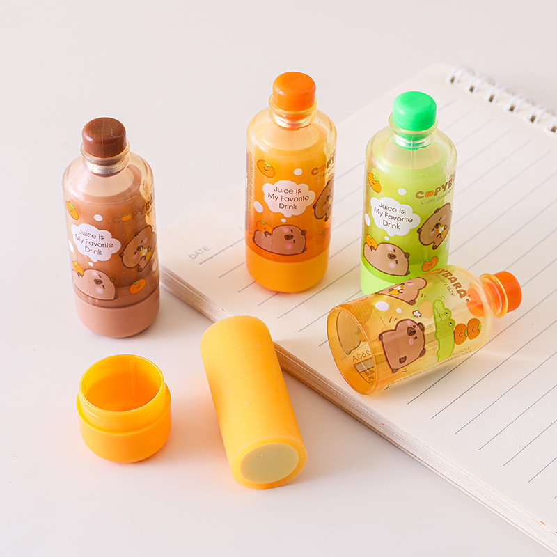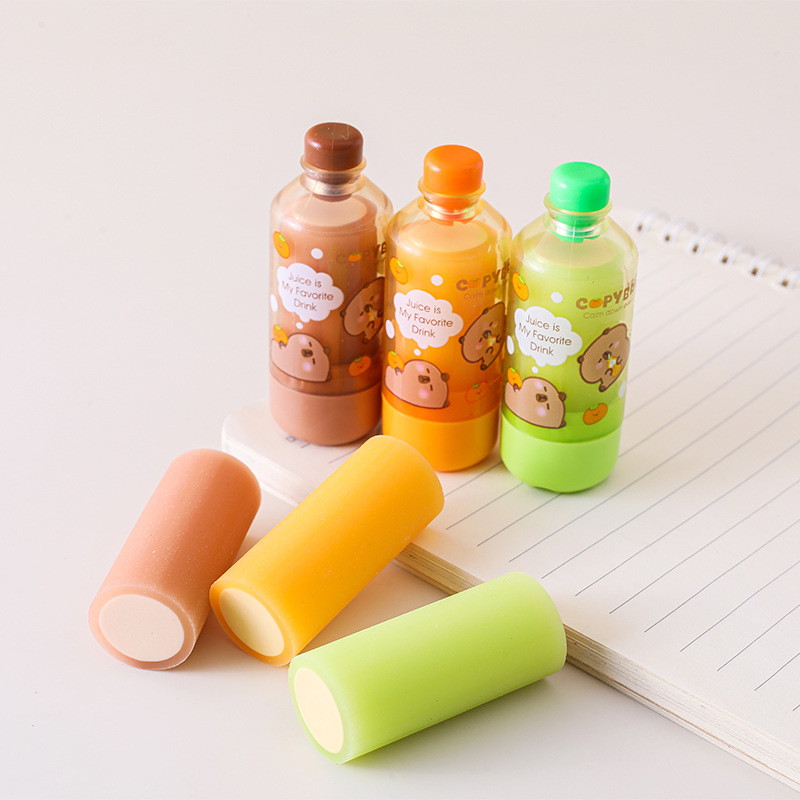 Tuqiang kapibala 음료 병 지우개 창조적 인 디자인 초등학교 학생을위한 만화 주스 병 연필 지우개