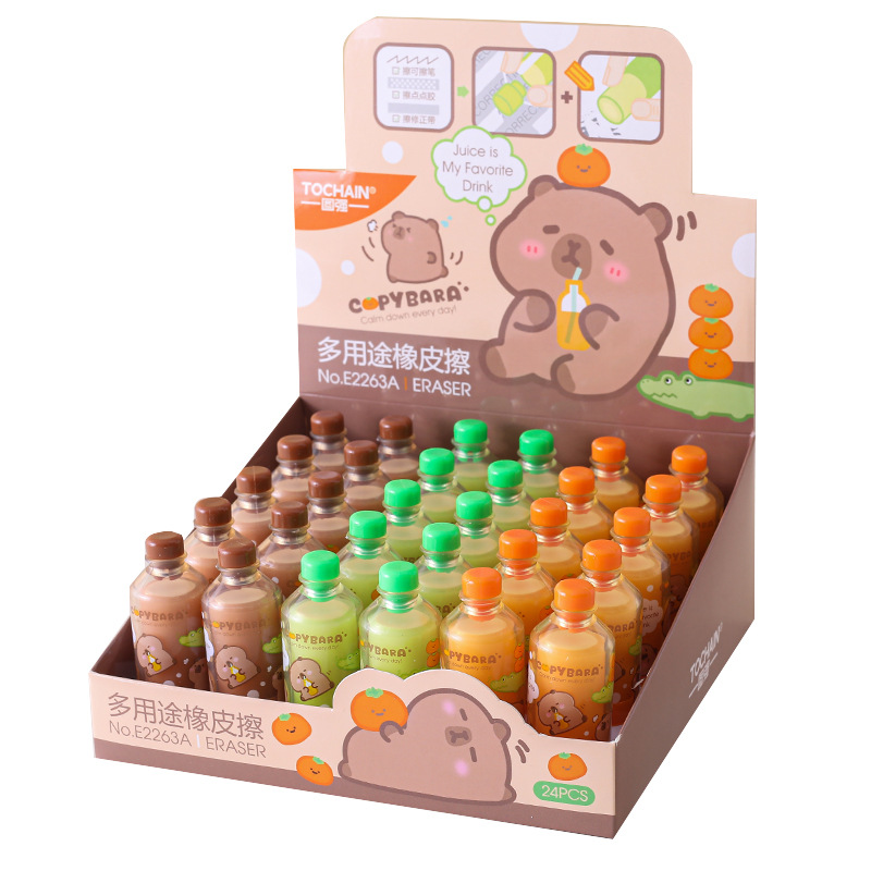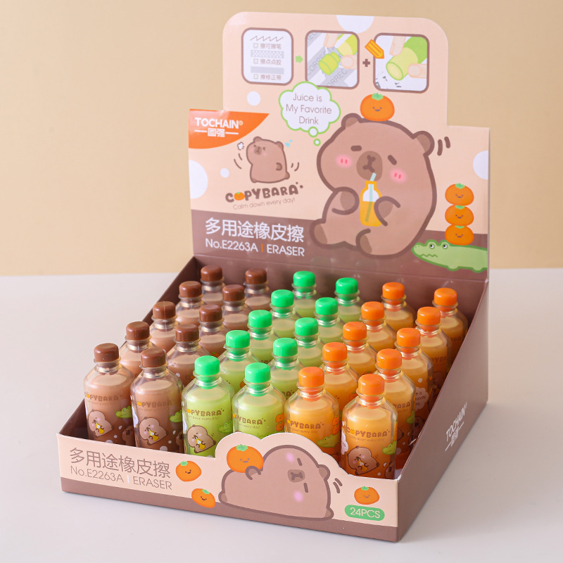 Tuqiang kapibala 음료 병 지우개 창조적 인 디자인 초등학교 학생을위한 만화 주스 병 연필 지우개스토어 가기