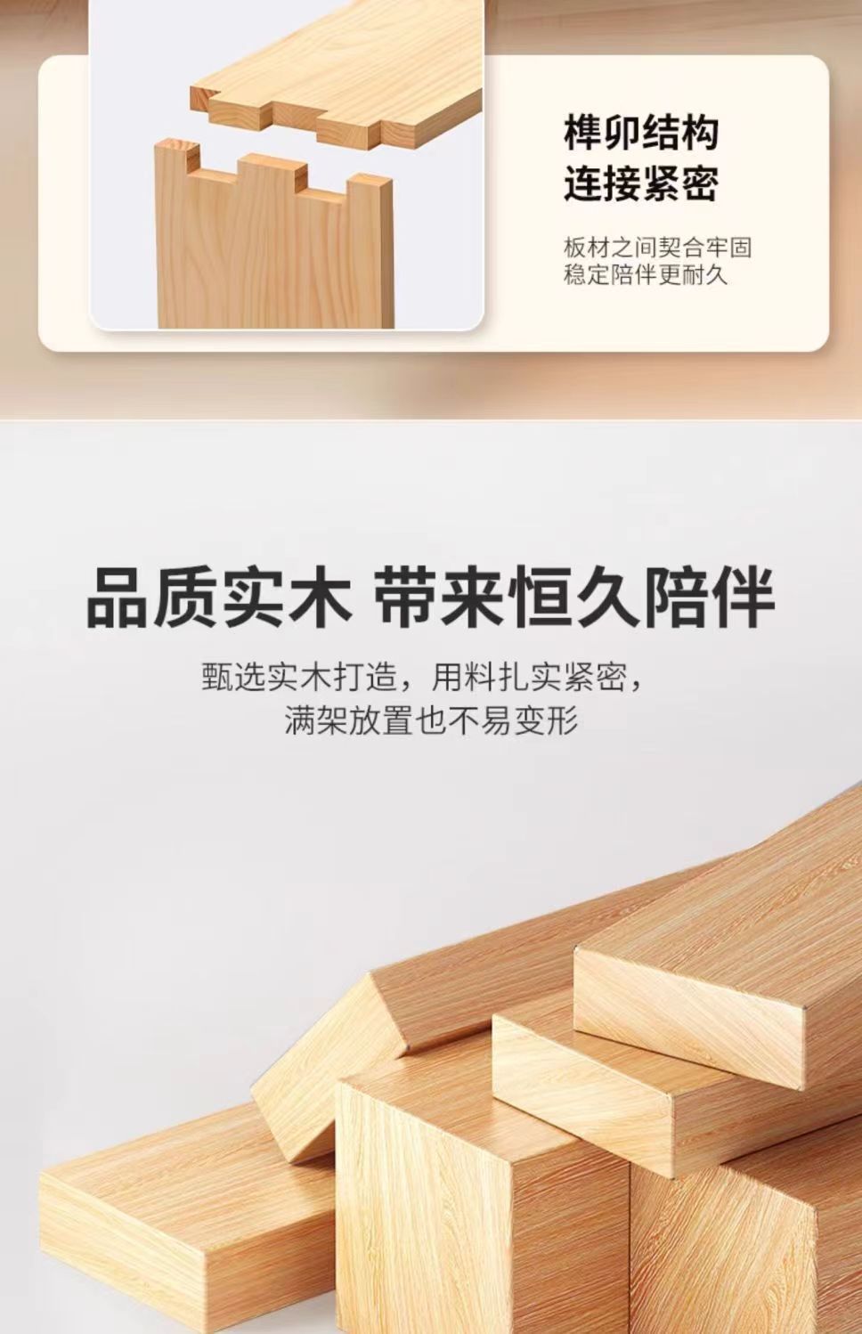 • 수입 소나무는 뒷판을 사용하여 6개의 수납공간을 깊게 했습니다.