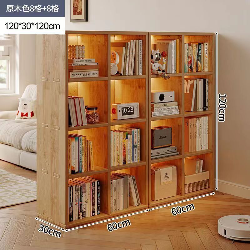 솔리드 우드 책장 보관 선반 바닥 거실 소파 파티션 디스플레이 보관 어린이 사물함 가정용 통나무 책장스토어 가기