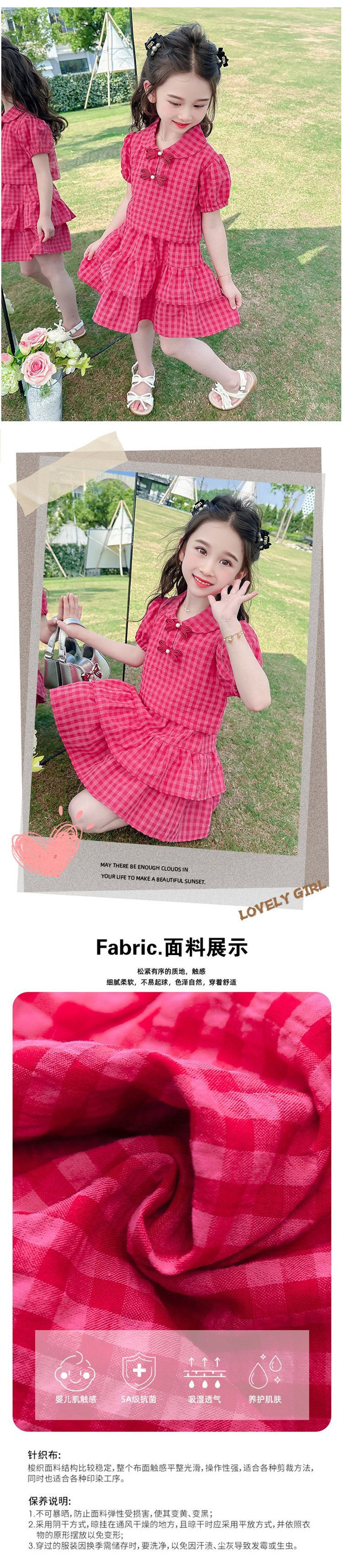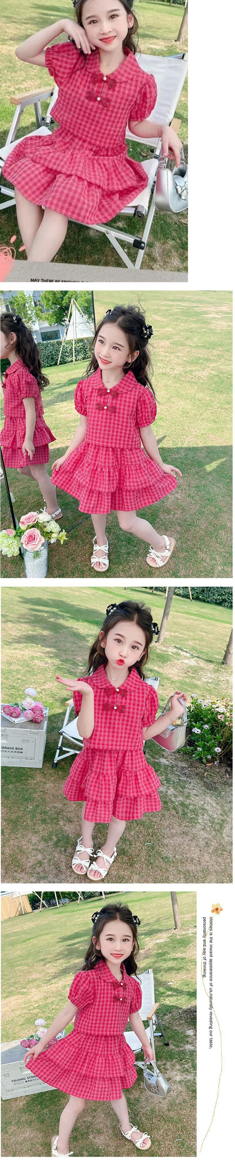2025 아기 여름 소녀 반팔 체크 무늬 세트 새로운 어린이 서양식 치마 투피스 여름 격자 무늬 스커트