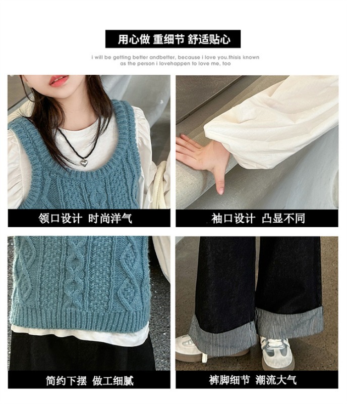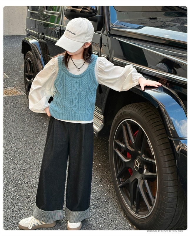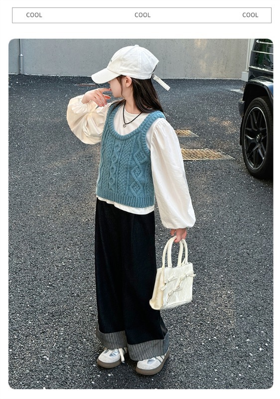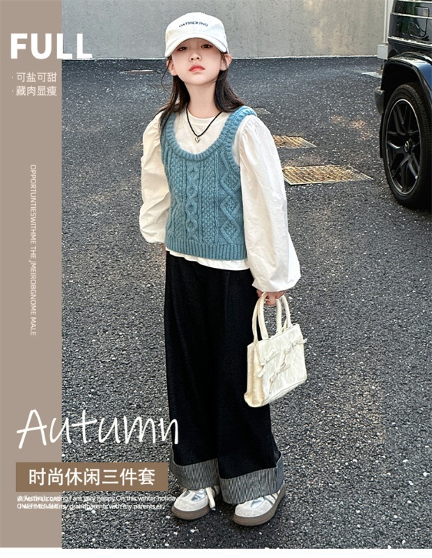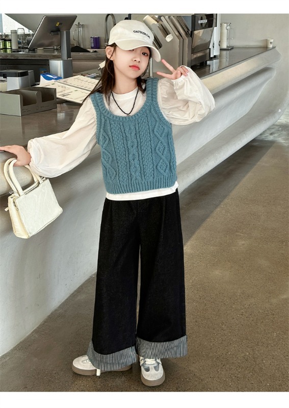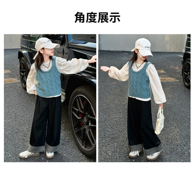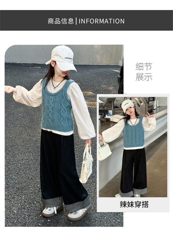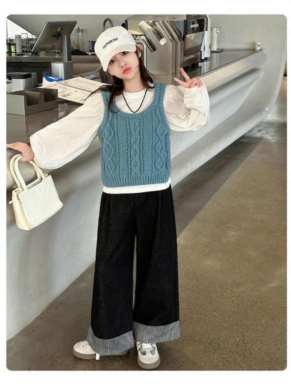 소녀의 봄과 가을 아동복 2025 새로운 올매치 니트웨어 조끼 블루 체닐 조끼스토어 가기