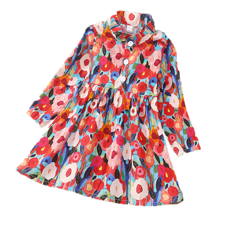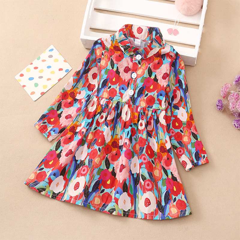 소녀의 꽃 원피스 봄과 가을 새로운 어린이 서양식 봄 아기 소녀의 긴 소매 봄 원피스 공주 원피스스토어 가기