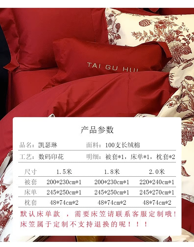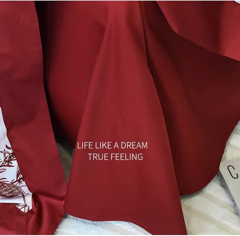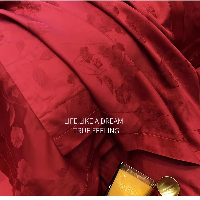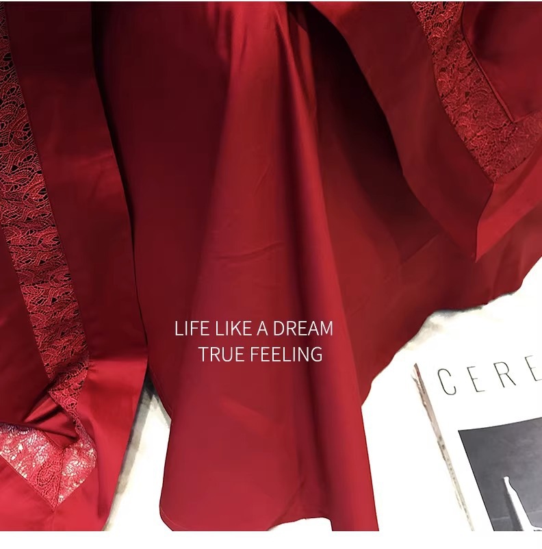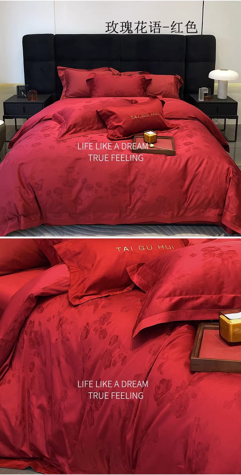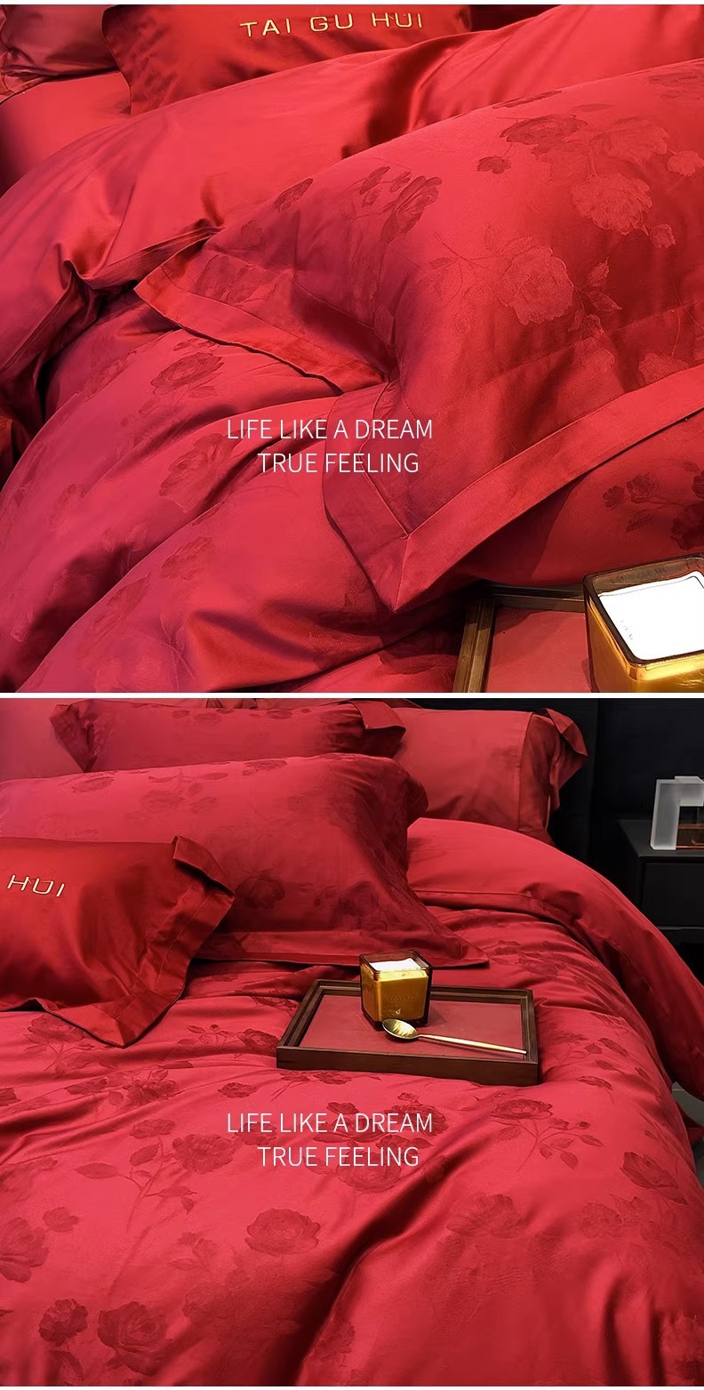 100 긴 스테이플 코튼 웨딩 4 피스 세트 간단한 레드 버건디 웨딩 코튼 양면 침구 4스토어 가기