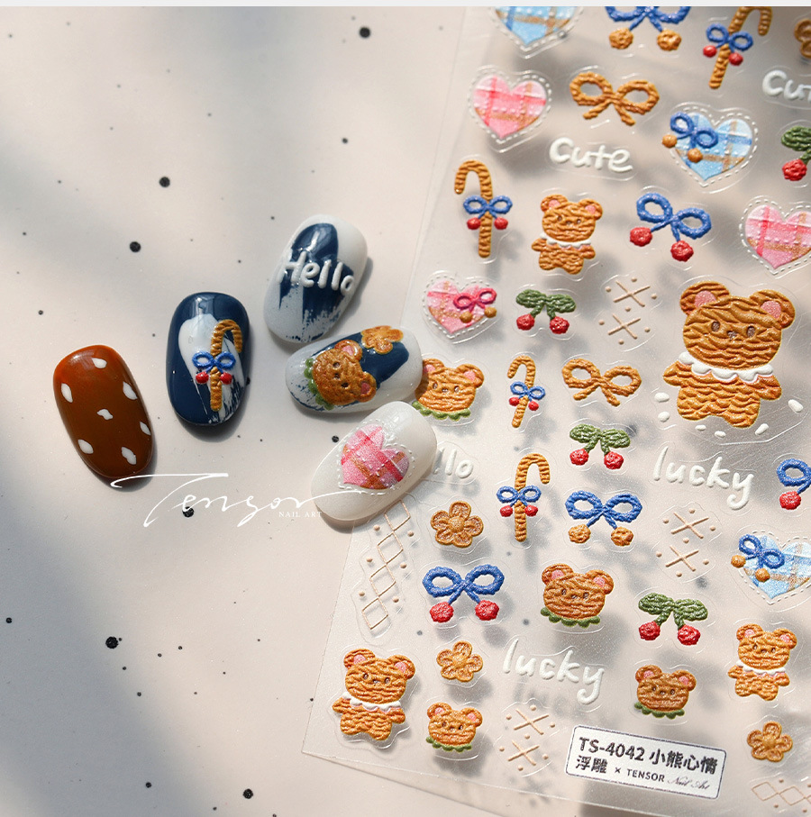 Magico Iron 5D 양각 네일 아트 스테레오 TS-4042-Bear 무드 프로 프로스트 얇은 네일 스티커