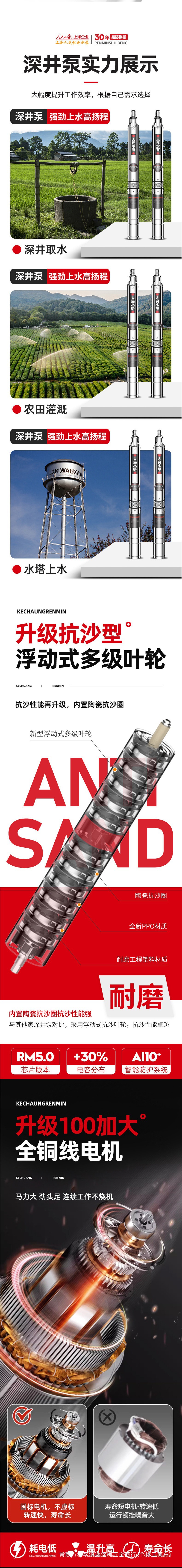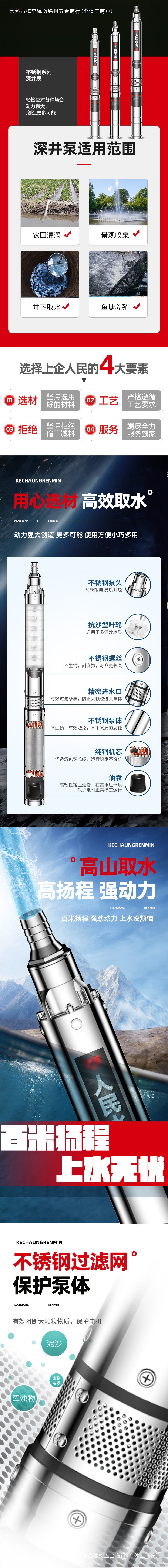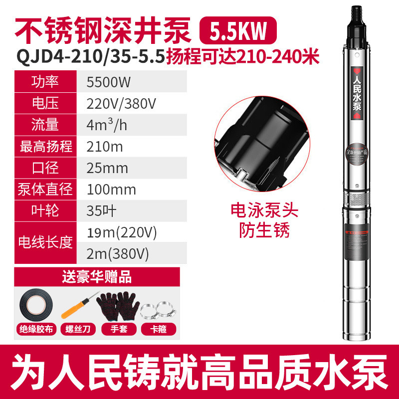 사람들의 깊은 우물 펌프 국가 표준 잠수정 펌프 잘 물을 펌핑하는 상하이 스테인리스 가정용 농업 고출력 높은 리프트 펌프스토어 가기
