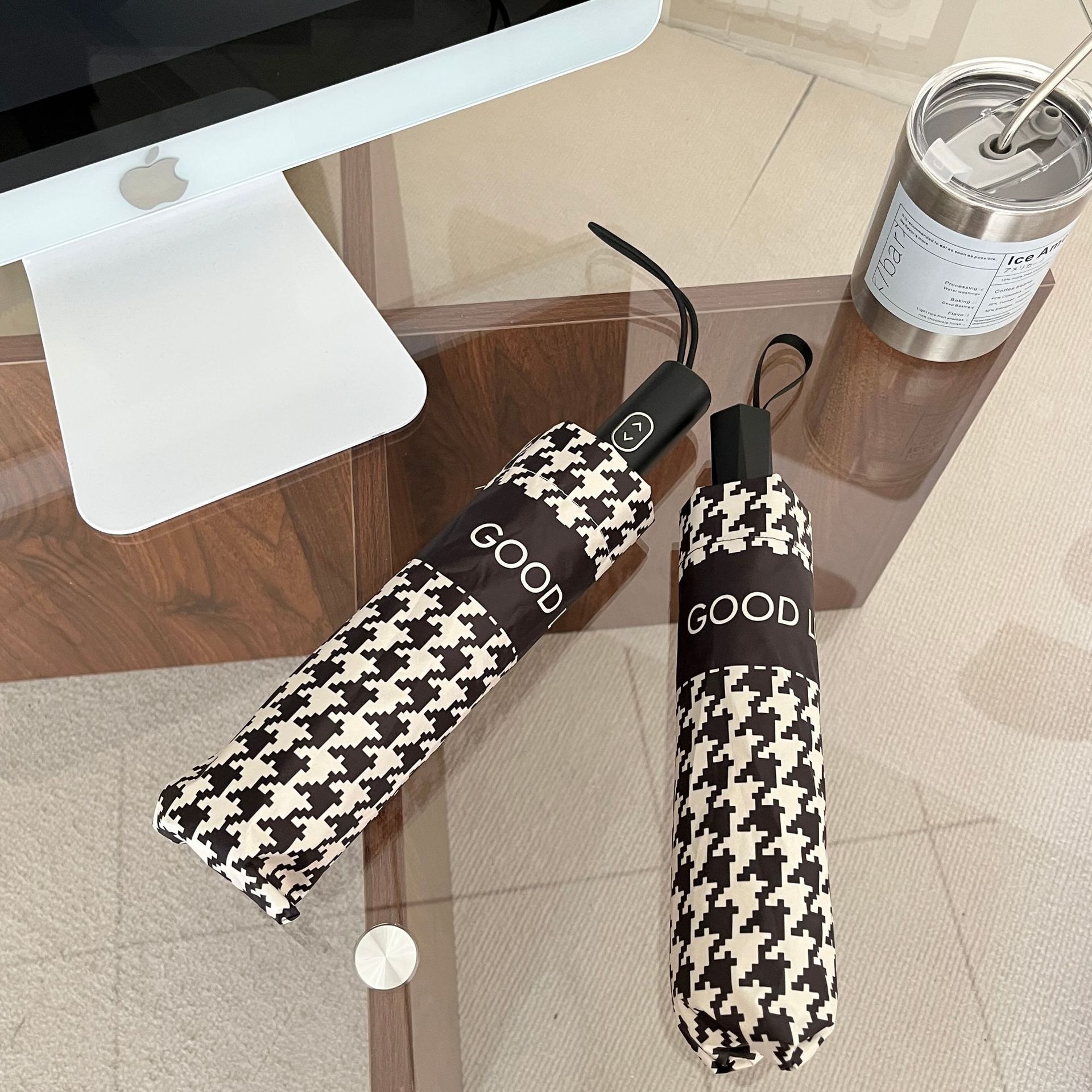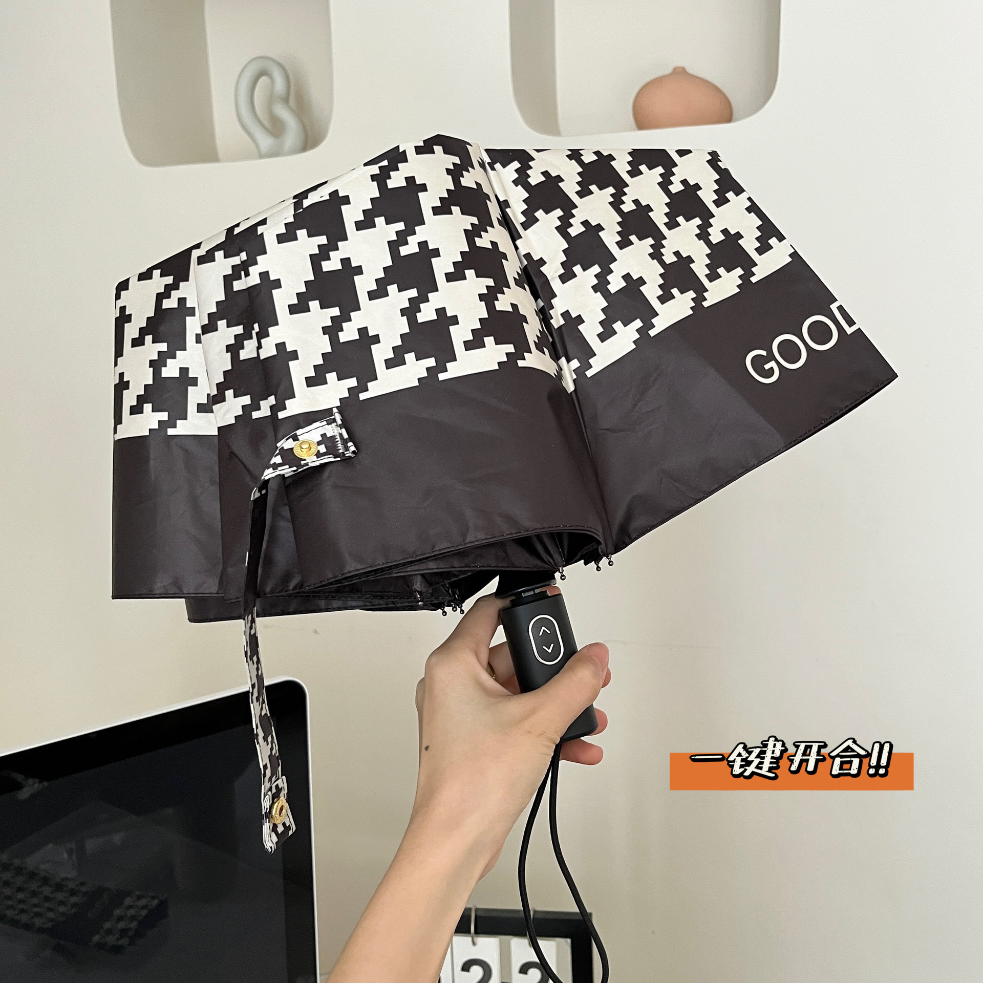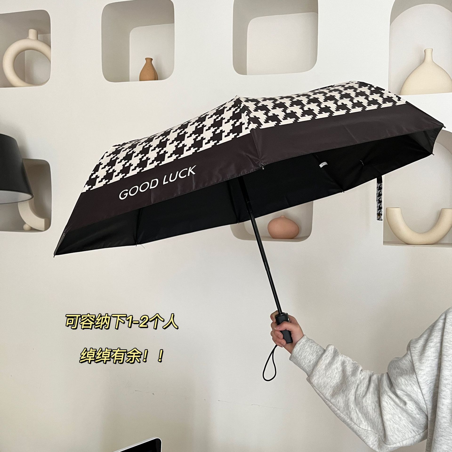 우산 ins 차양 격자무늬 블랙 글로시 자외선 차단 접이식 우산 비와 햇빛 겸용 도매 학생 여성용 방풍 및 자외선 차단