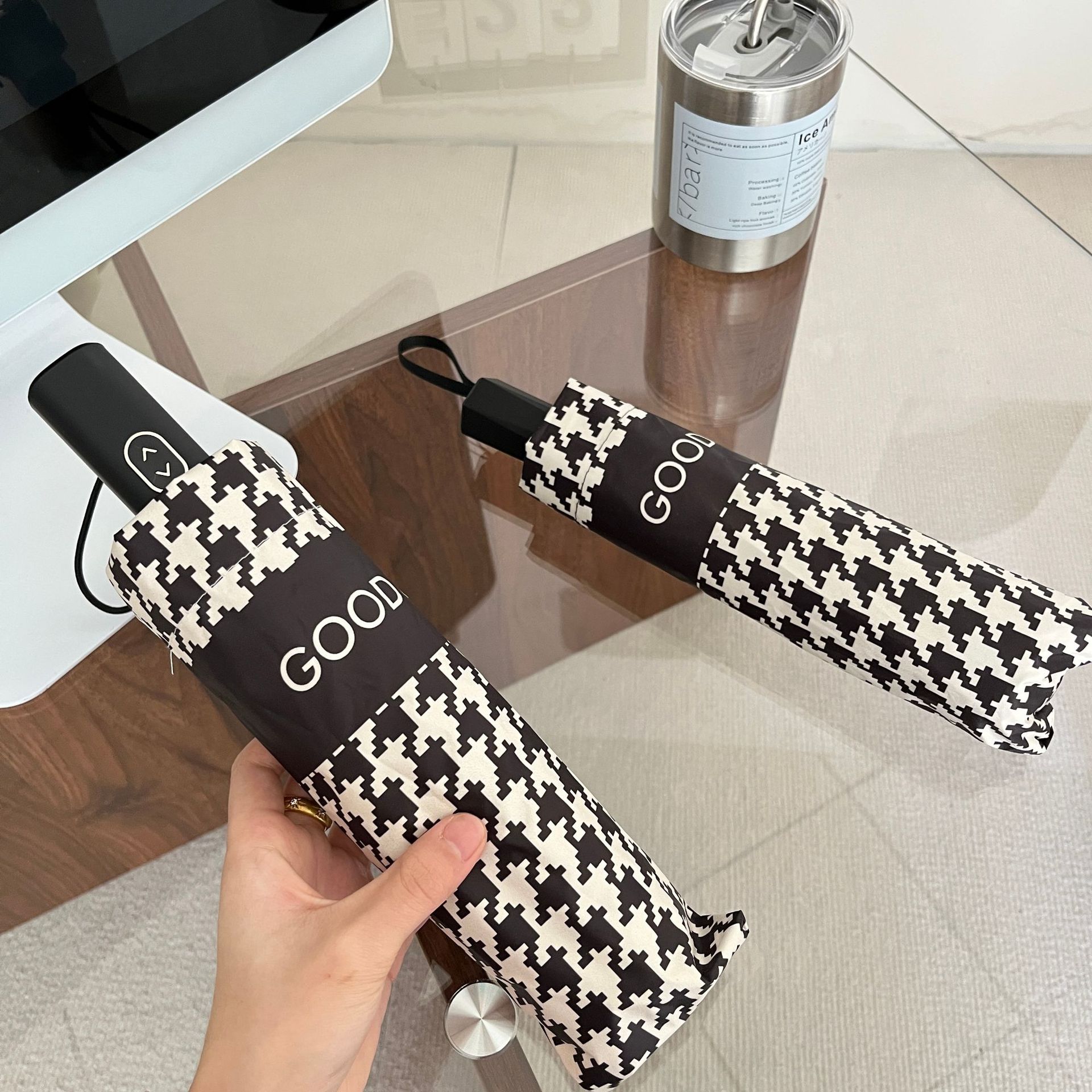 우산 ins 차양 격자무늬 블랙 글로시 자외선 차단 접이식 우산 비와 햇빛 겸용 도매 학생 여성용 방풍 및 자외선 차단스토어 가기