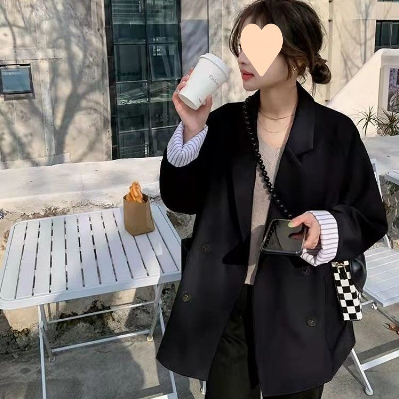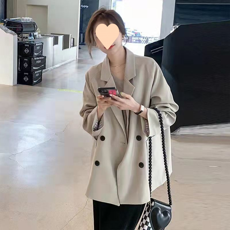 2024 봄과 가을 새로운 한국 스타일 중간 길이 더블 브레스트 캐주얼 작은 세트 느슨한 명암 세트 재킷스토어 가기