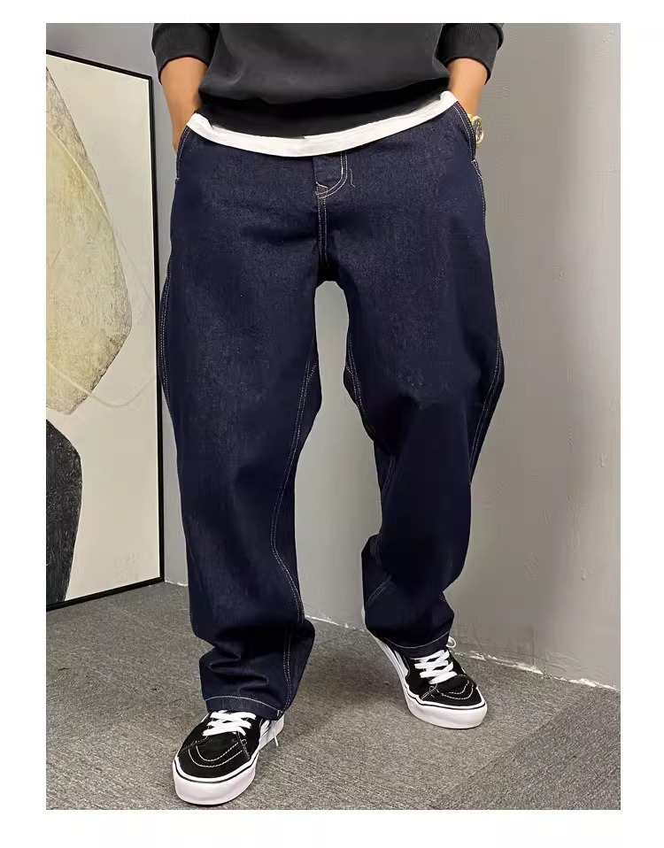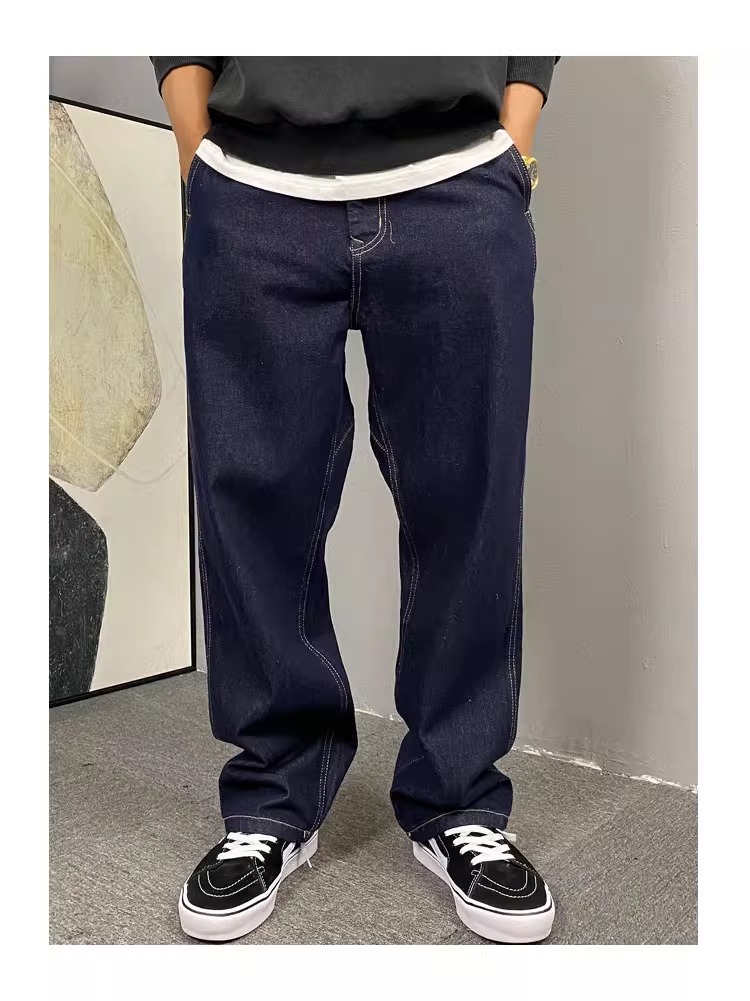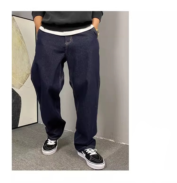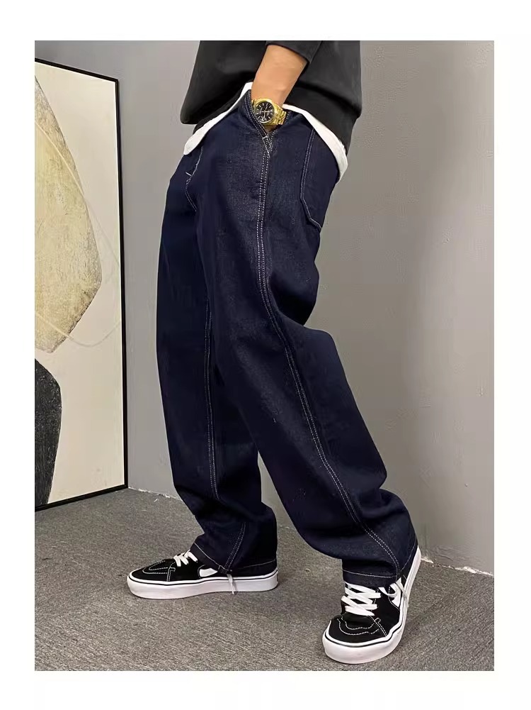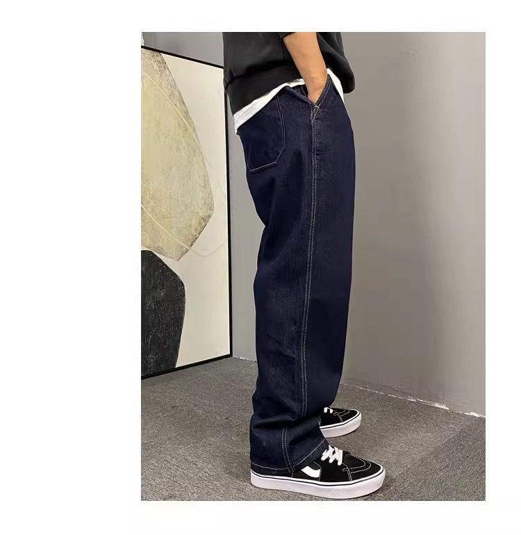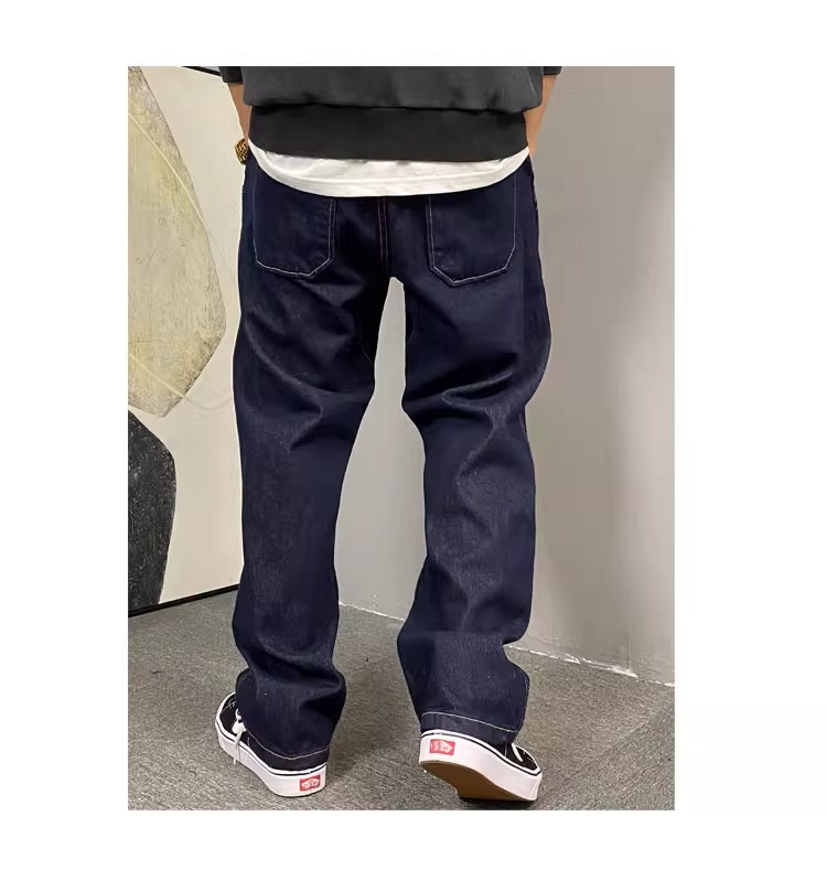 봄과 가을 스트레이트-다리 넓은 다리 청바지 소년을위한 미국 스타일 빈티지 새로운 스타일 핸섬 느슨한 올매치 플러스 사이즈 세탁 캐주얼 바지스토어 가기