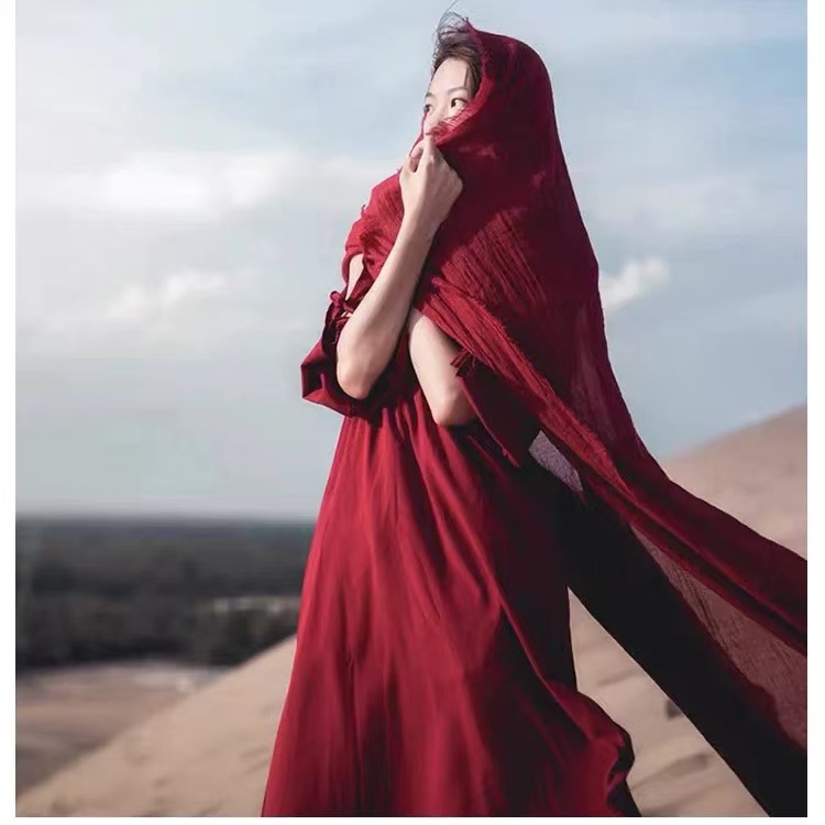 실크 스카프 여성 이집트 사막 여행 선스크린 민족 스타일 목도리 여성 차카 솔트 레이크 스카프 칭하이 빅 레드 스카프