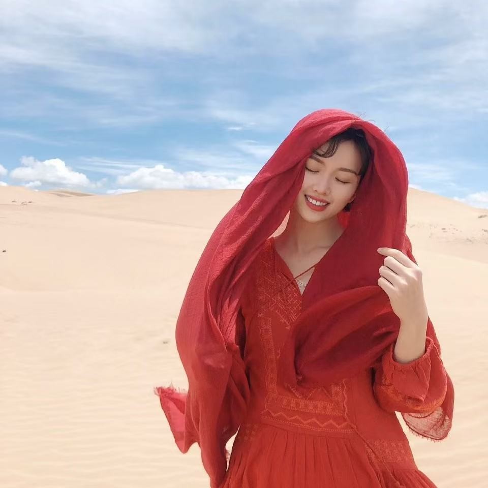 실크 스카프 여성 이집트 사막 여행 선스크린 민족 스타일 목도리 여성 차카 솔트 레이크 스카프 칭하이 빅 레드 스카프스토어 가기