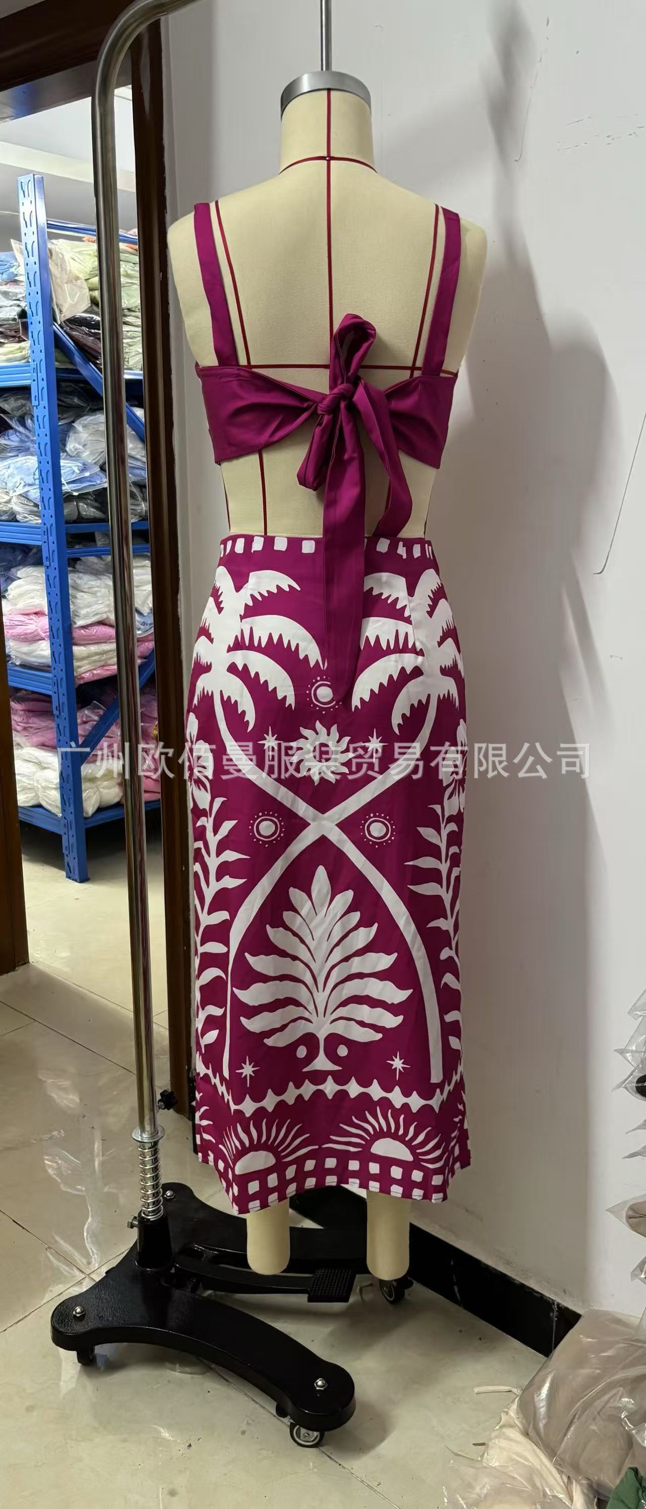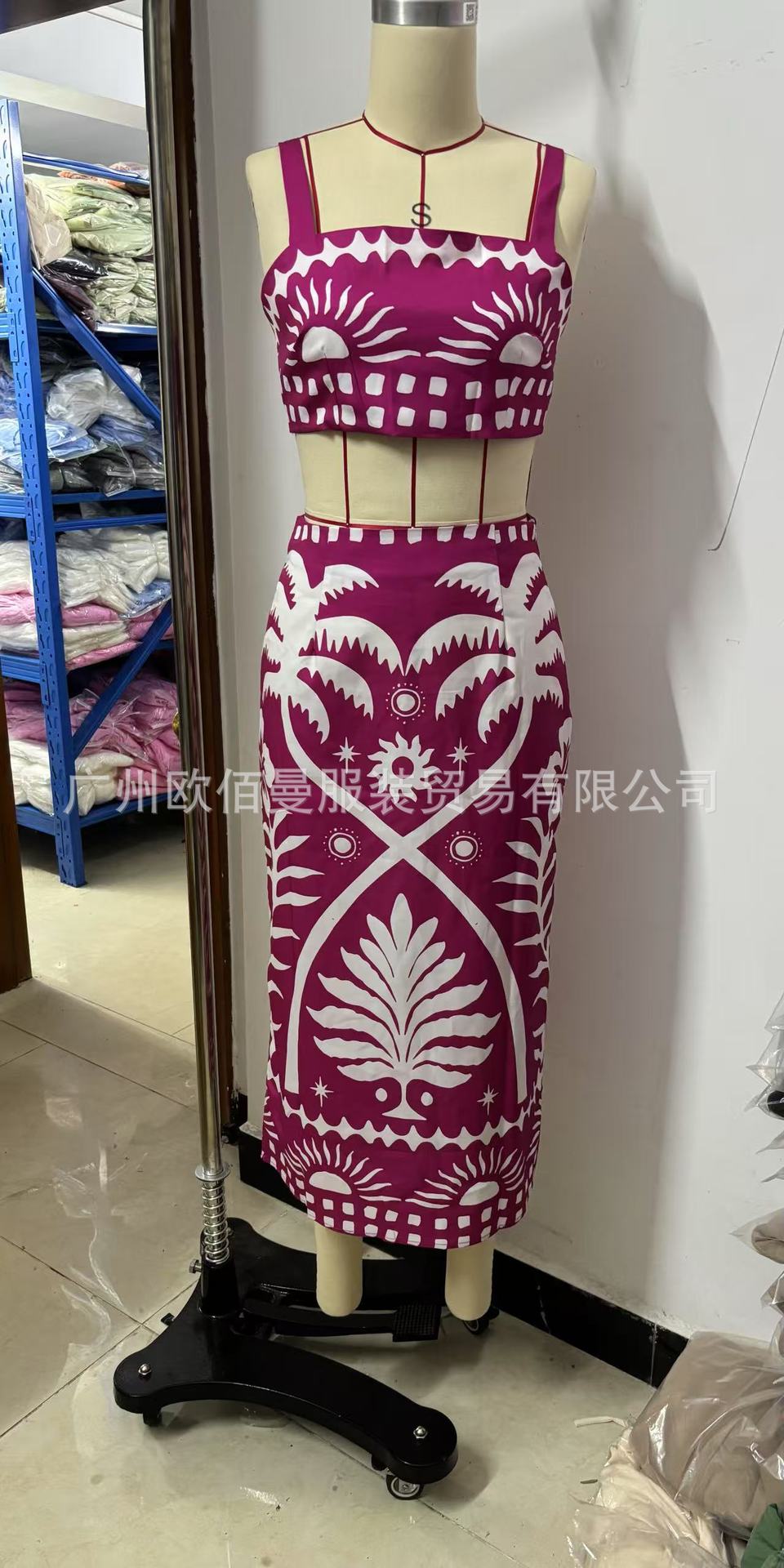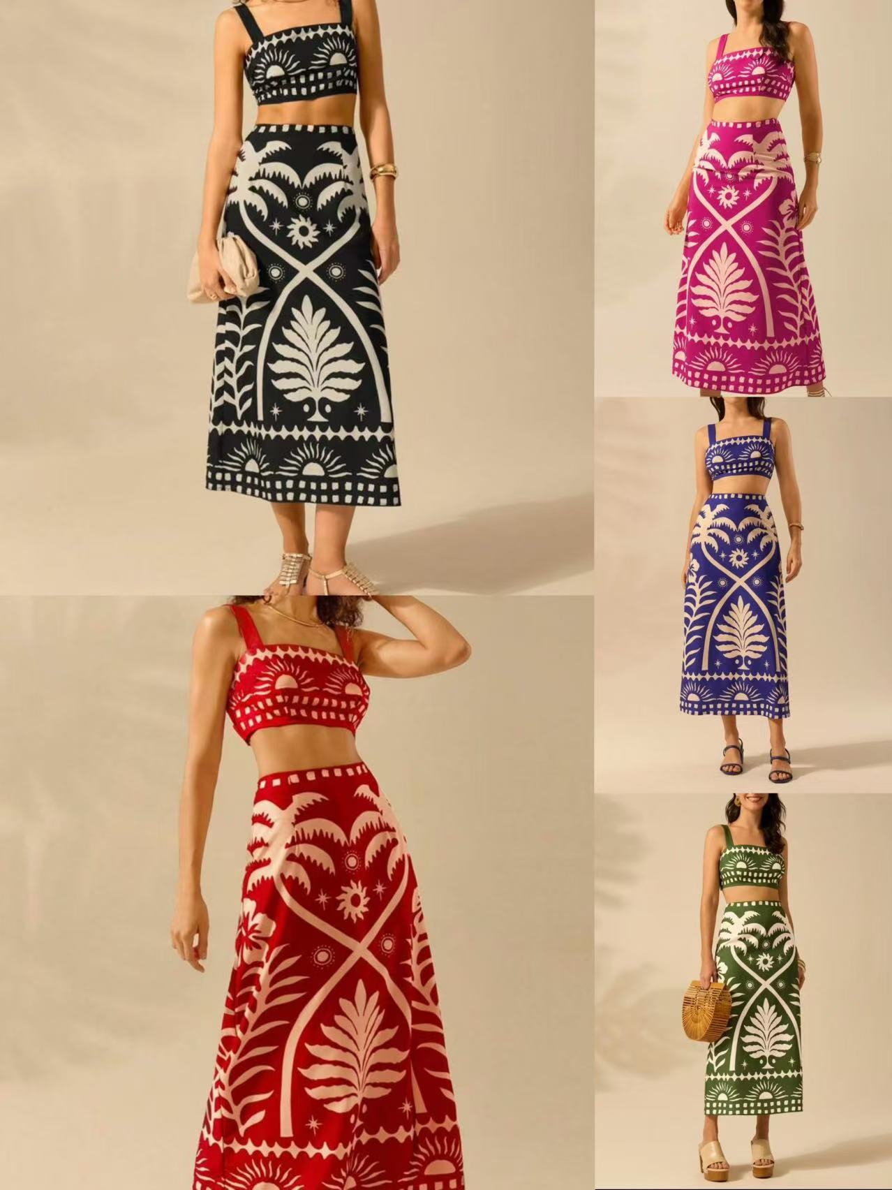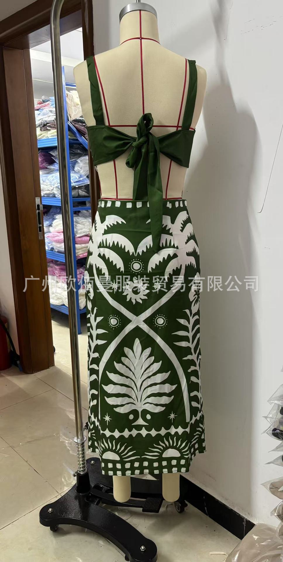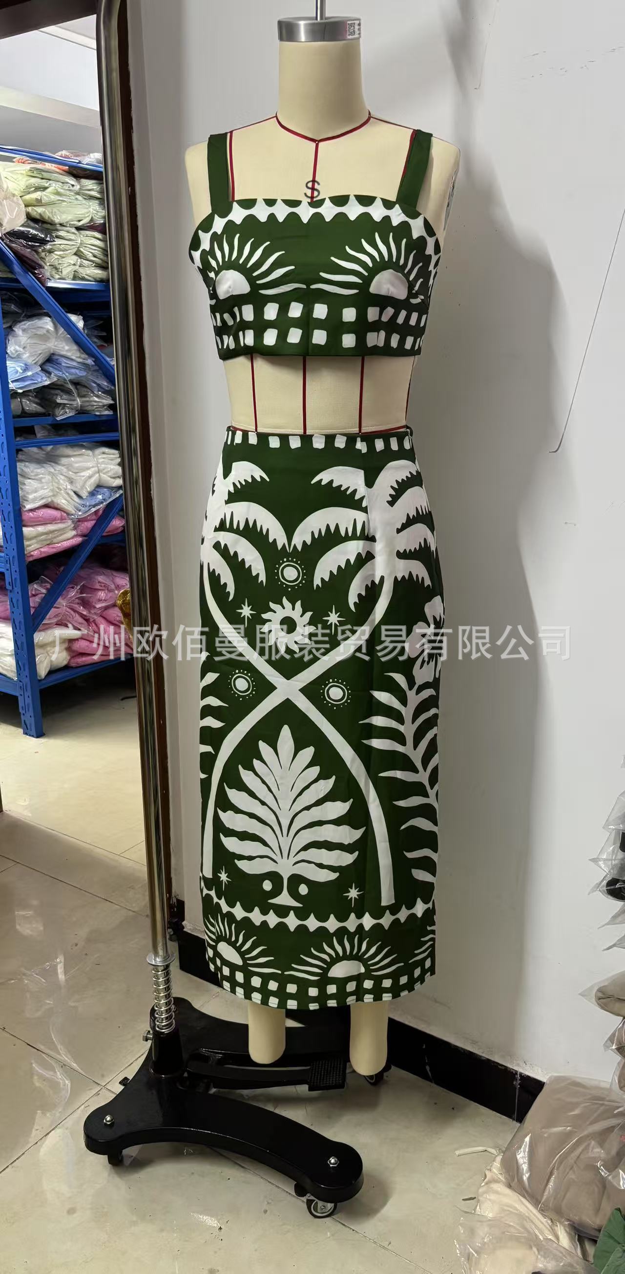 국경 간 아마존 여성 2025 유럽과 미국 여름 새로운 패션 섹시한 인쇄 슬링 긴 치마 세트스토어 가기