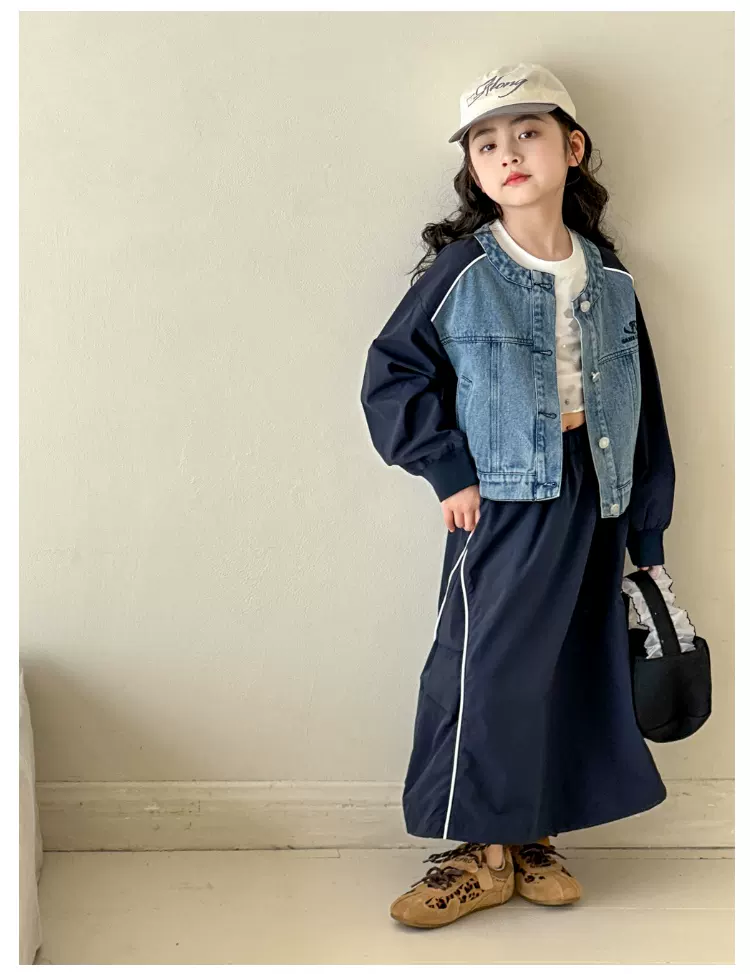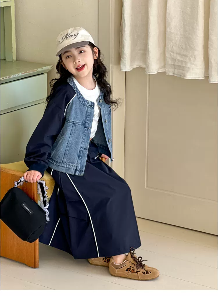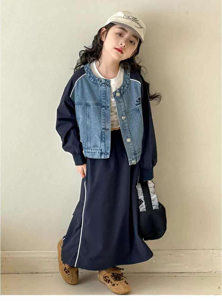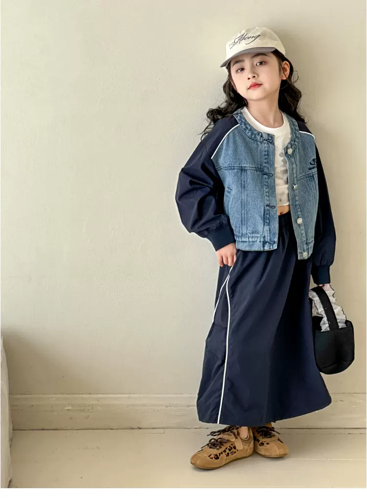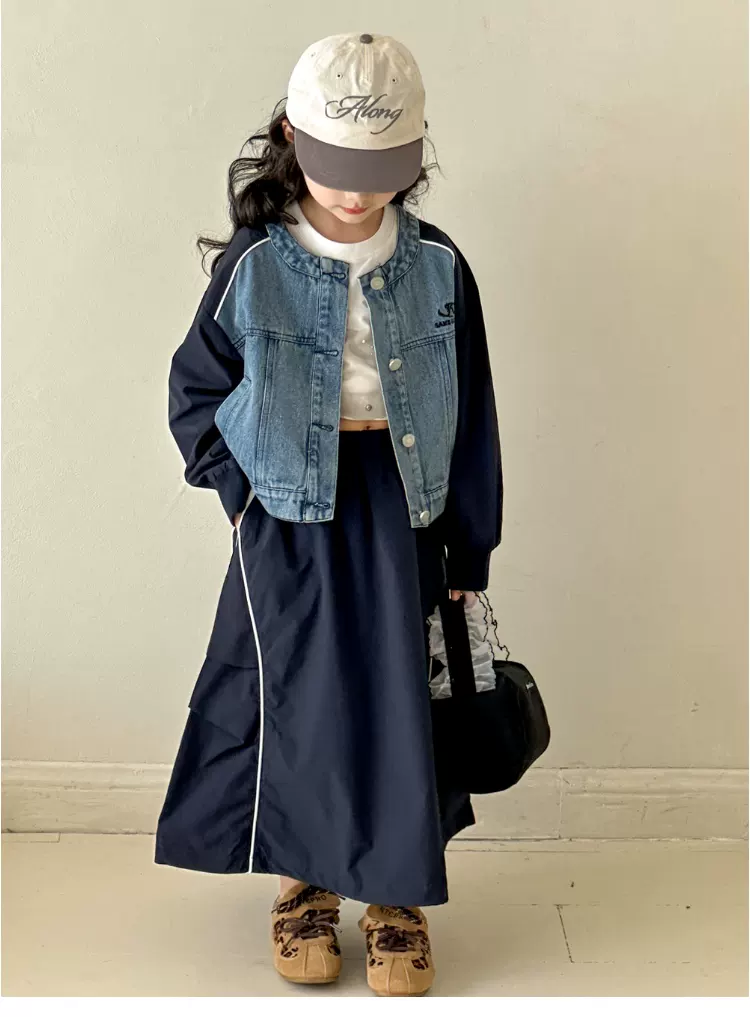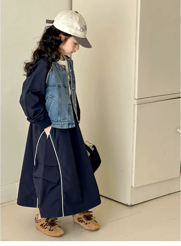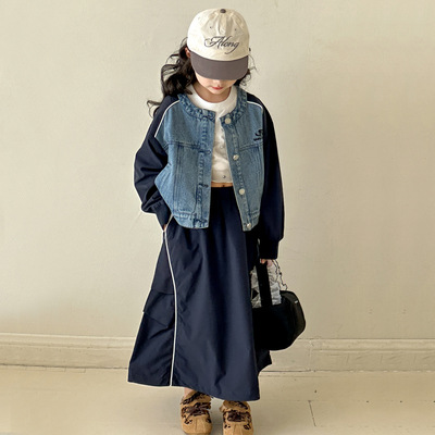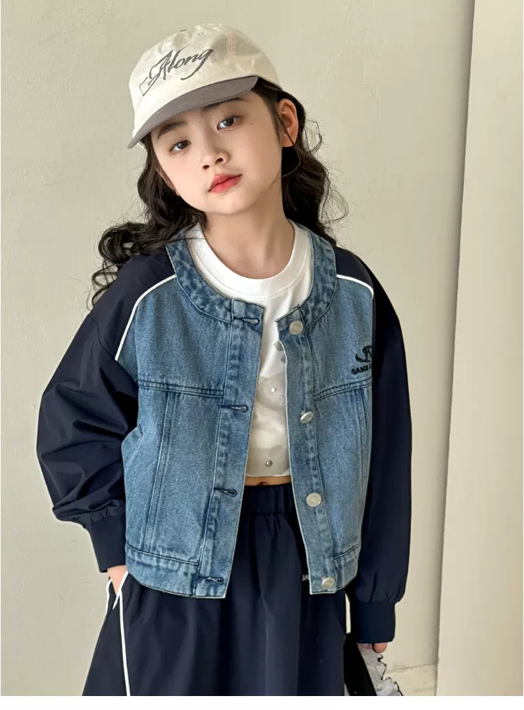 작은 붉은 물고기 소녀 데님 코트 봄과 가을 2025 새로운 한국 어린이 봄 자켓 큰 어린이 탑