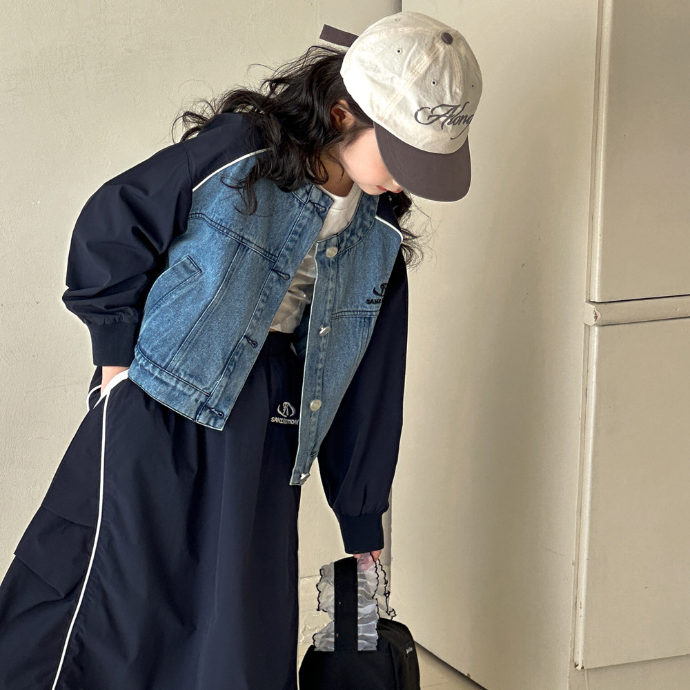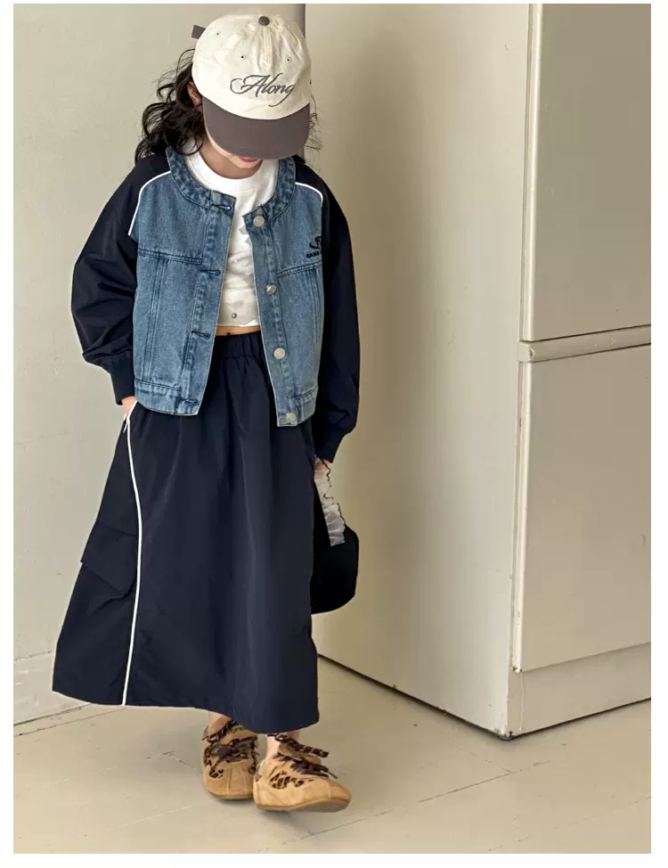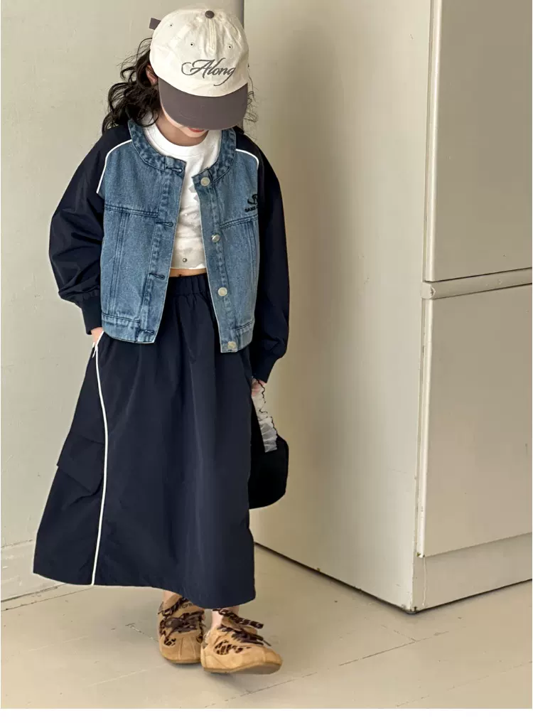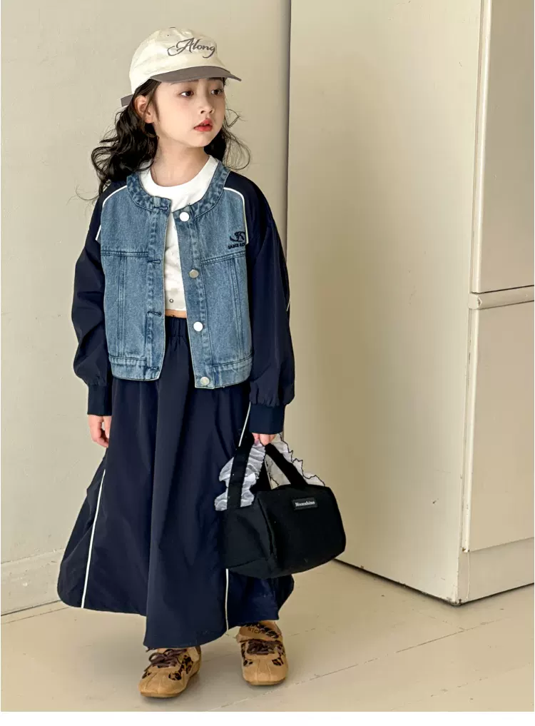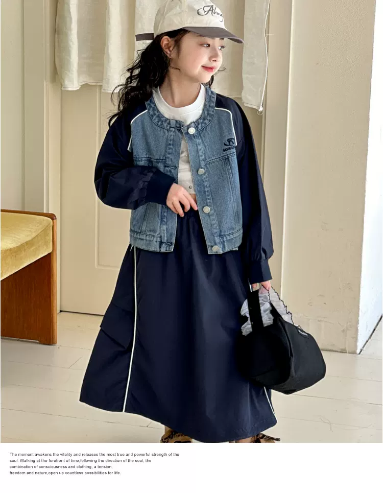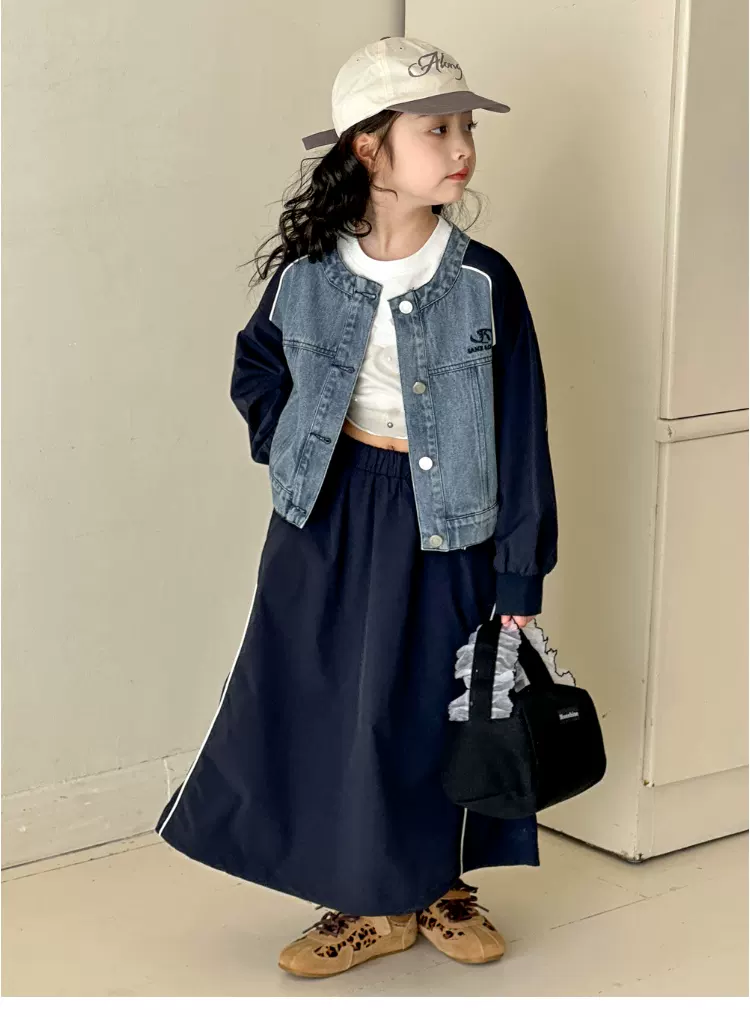작은 붉은 물고기 소녀 데님 코트 봄과 가을 2025 새로운 한국 어린이 봄 자켓 큰 어린이 탑