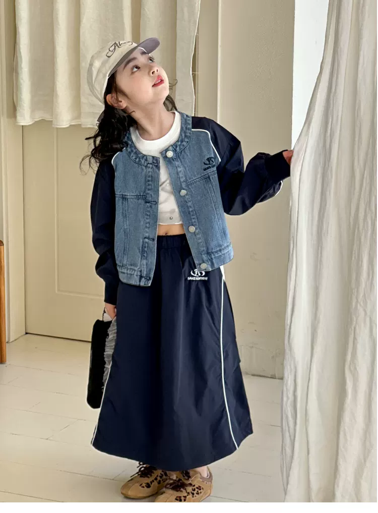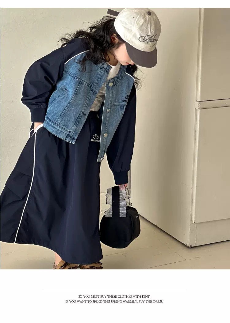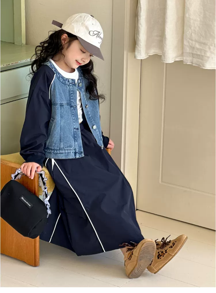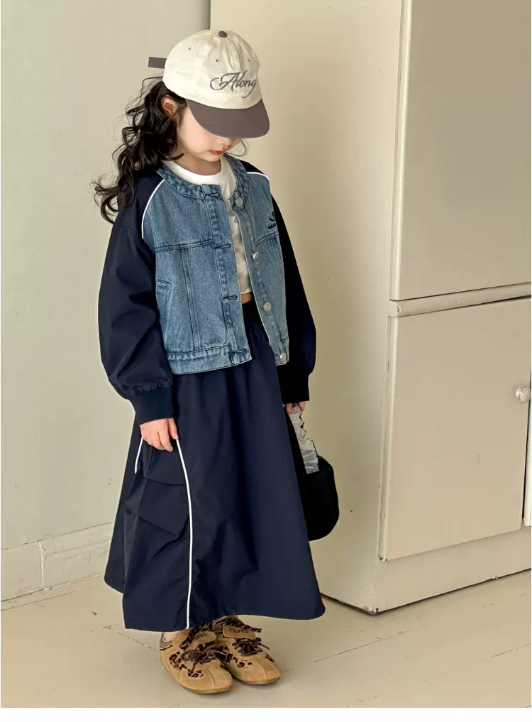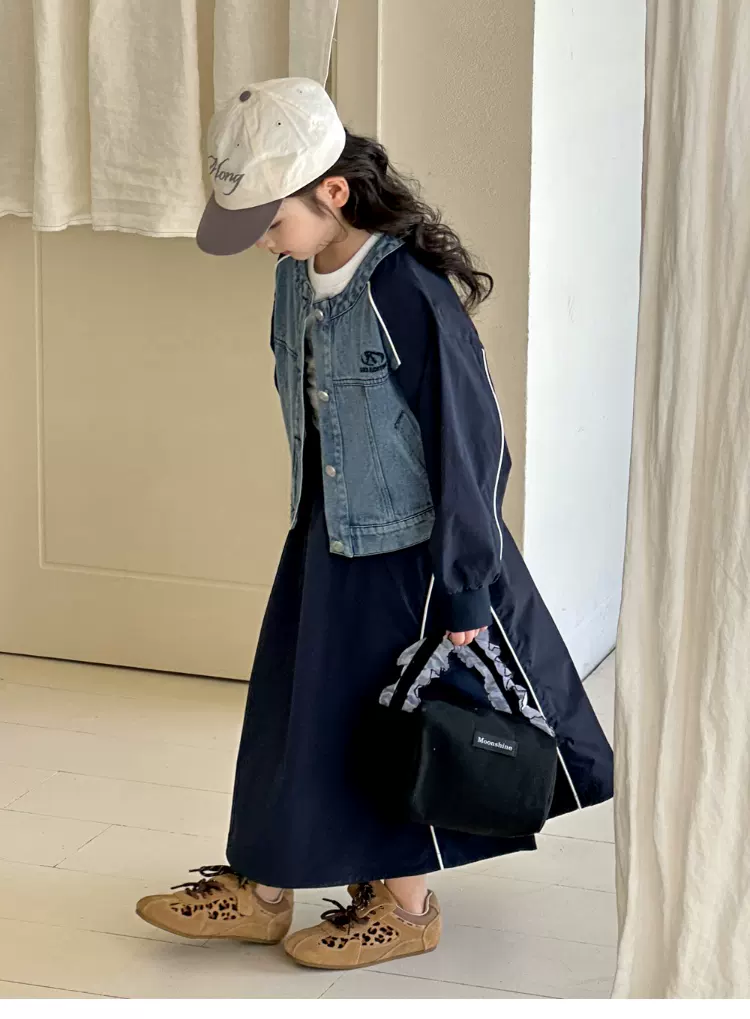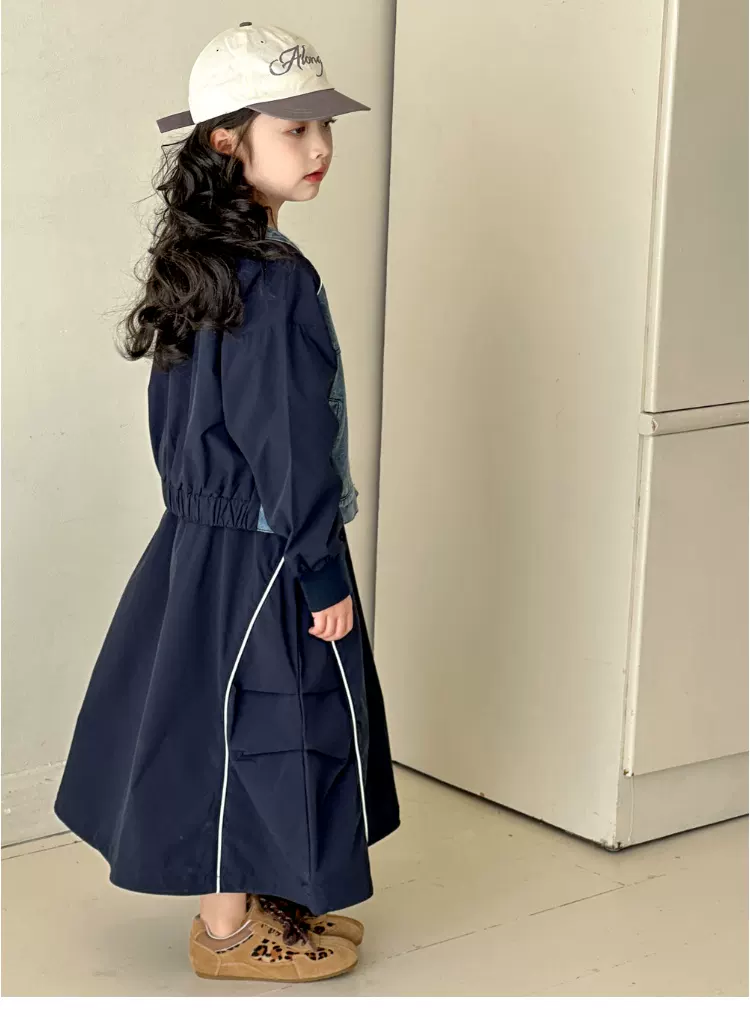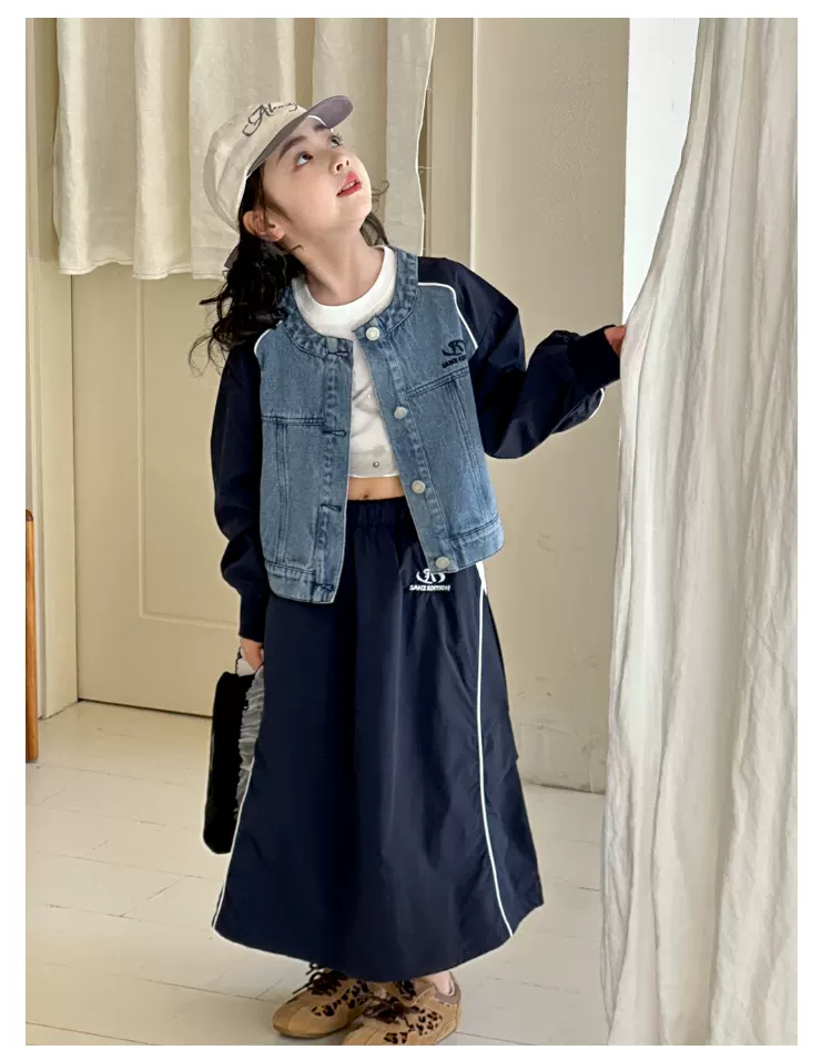 작은 붉은 물고기 소녀 데님 코트 봄과 가을 2025 새로운 한국 어린이 봄 자켓 큰 어린이 탑