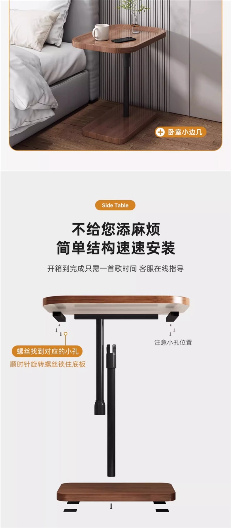 임대 주택을위한 소파 사이드 테이블 간단한 현대 침대 옆 작은 테이블 저장 랙 움직일 수있는 리프팅 사이드 테이블 작은 커피 테이블