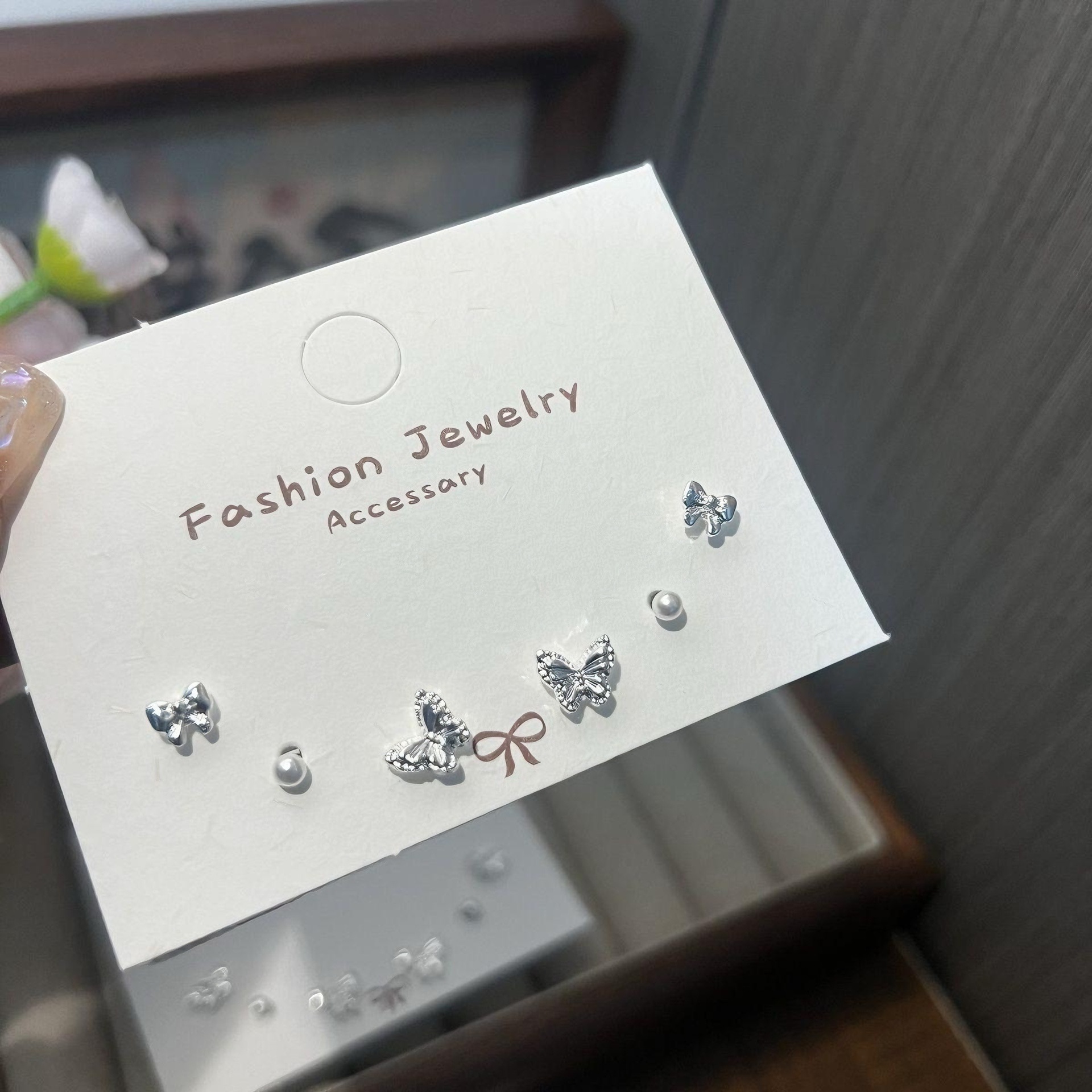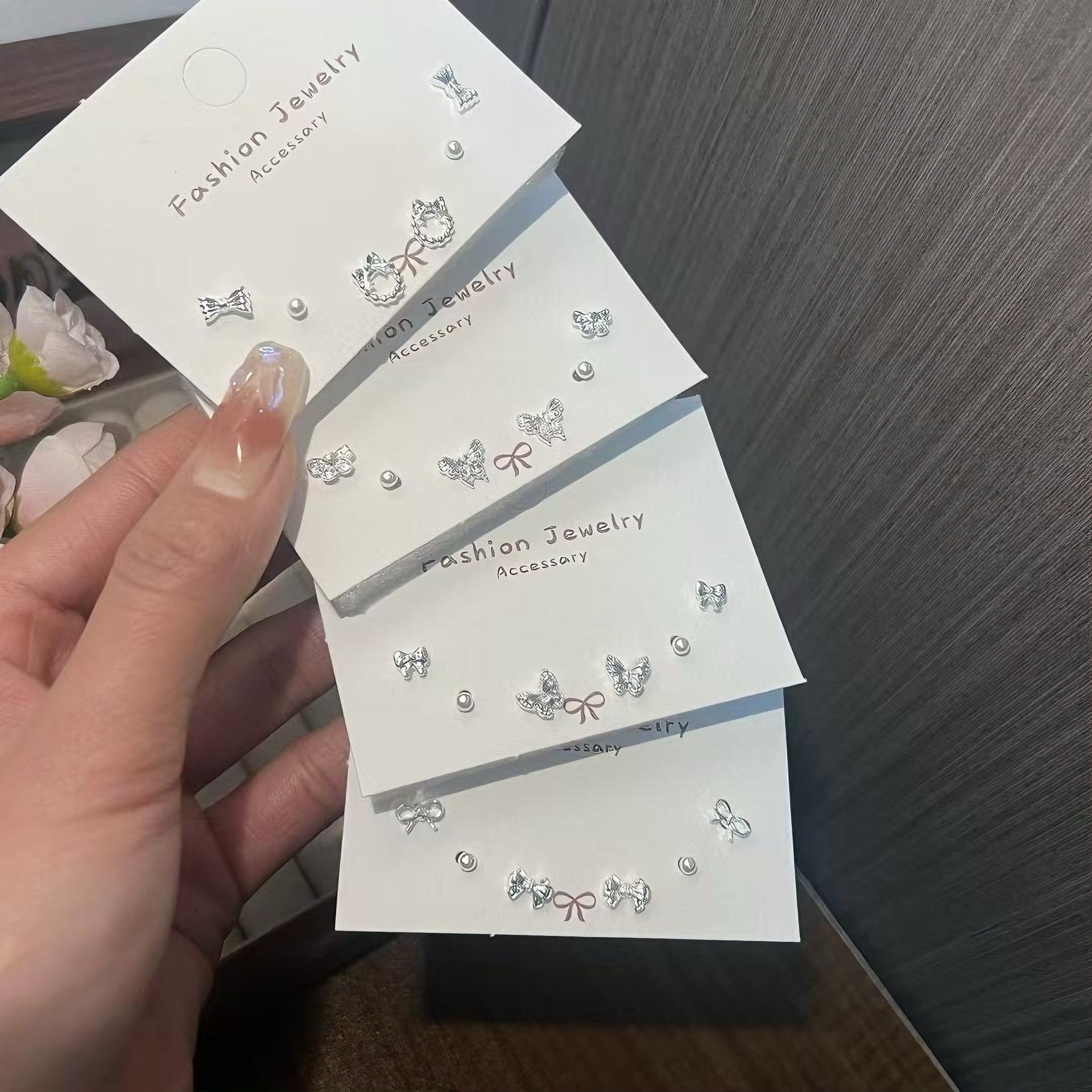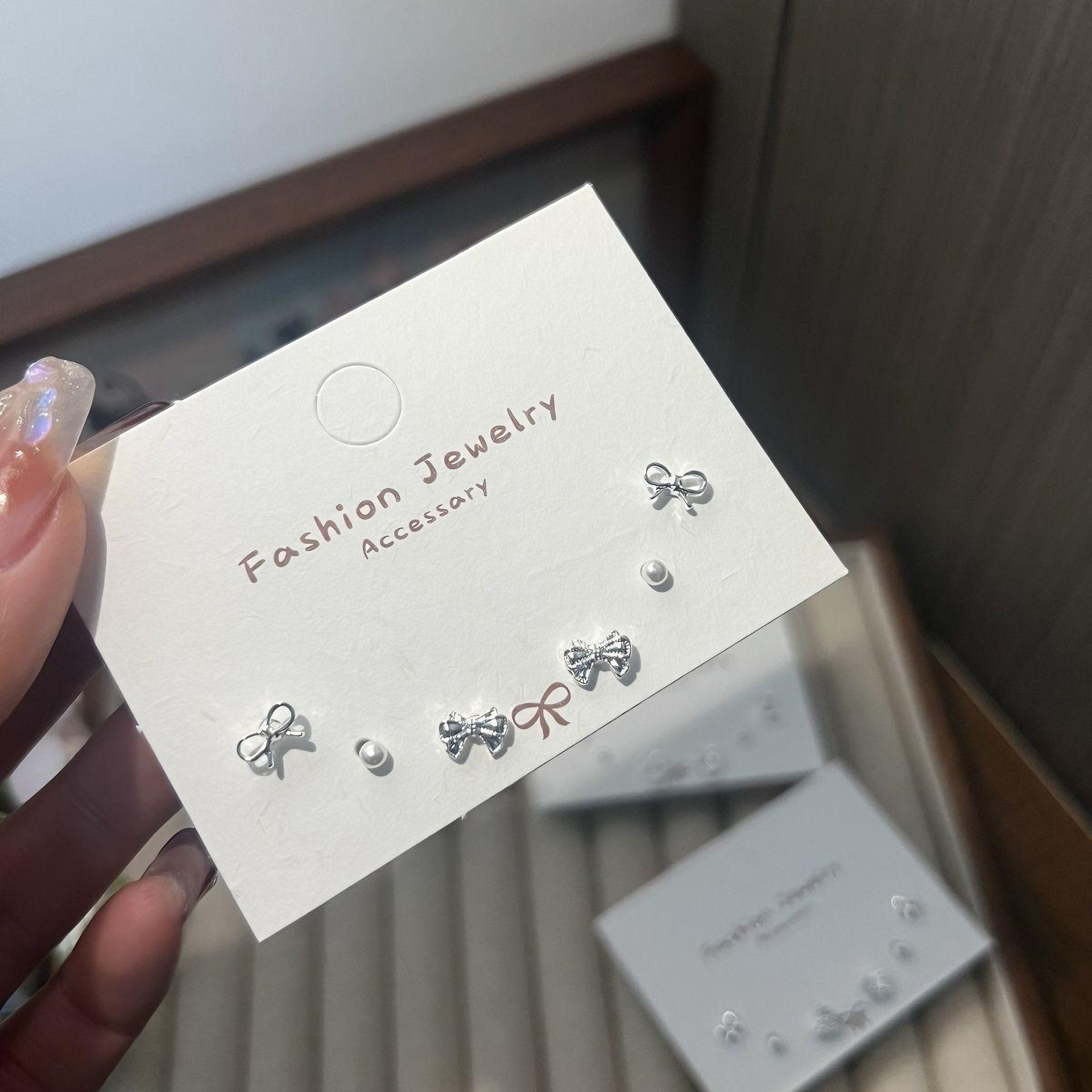 925 실버 바늘 소녀의 활 부드러운 귀걸이 간단한 달콤한 활 진주 귀걸이 작은 올 매치 귀걸이스토어 가기