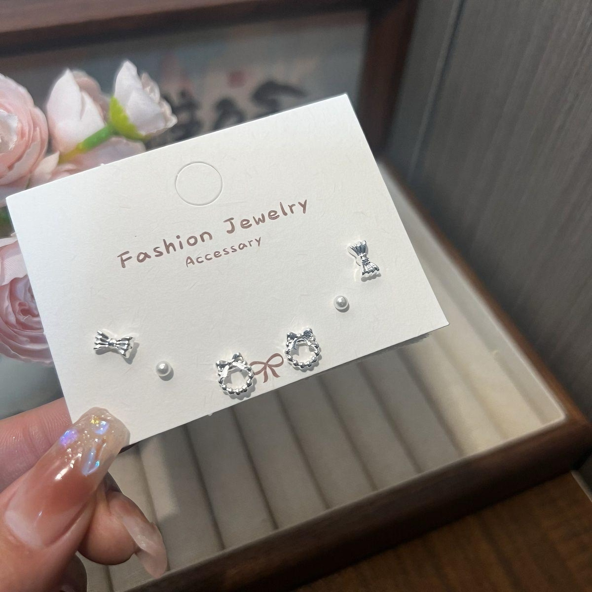 925 실버 바늘 소녀의 활 부드러운 귀걸이 간단한 달콤한 활 진주 귀걸이 작은 올 매치 귀걸이