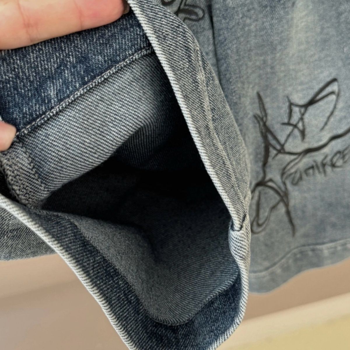 • 캣 프린트 데님 와이드 팬츠