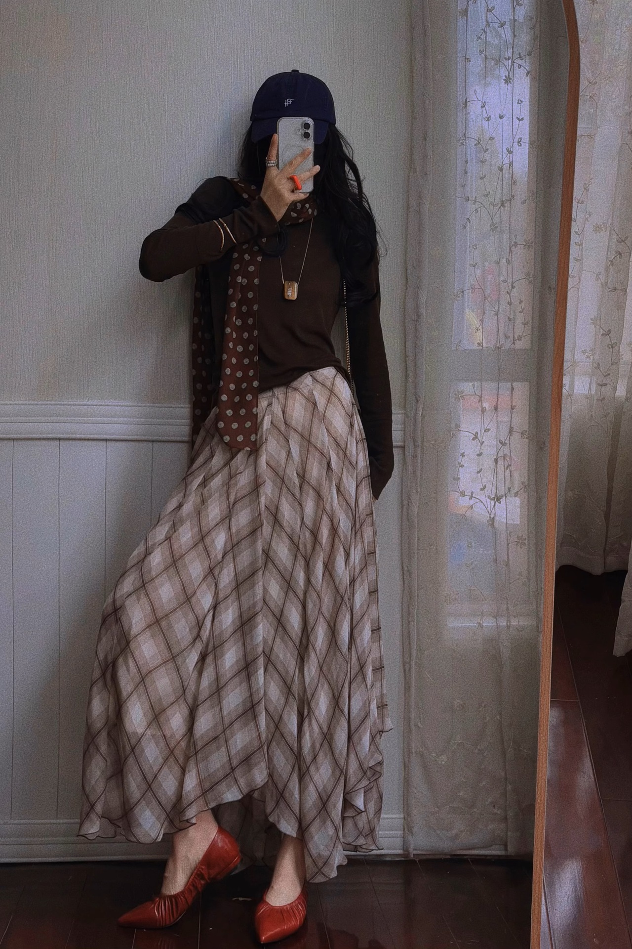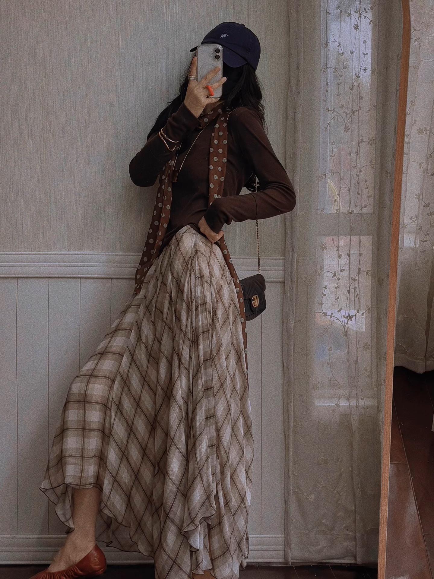 미국 복고풍 낮은 허리 뜨거운 소녀 우아한 원피스 해변 휴가 캐주얼 체크 무늬 다크 브라운 스커트 스프링의 생산에 모든 방법