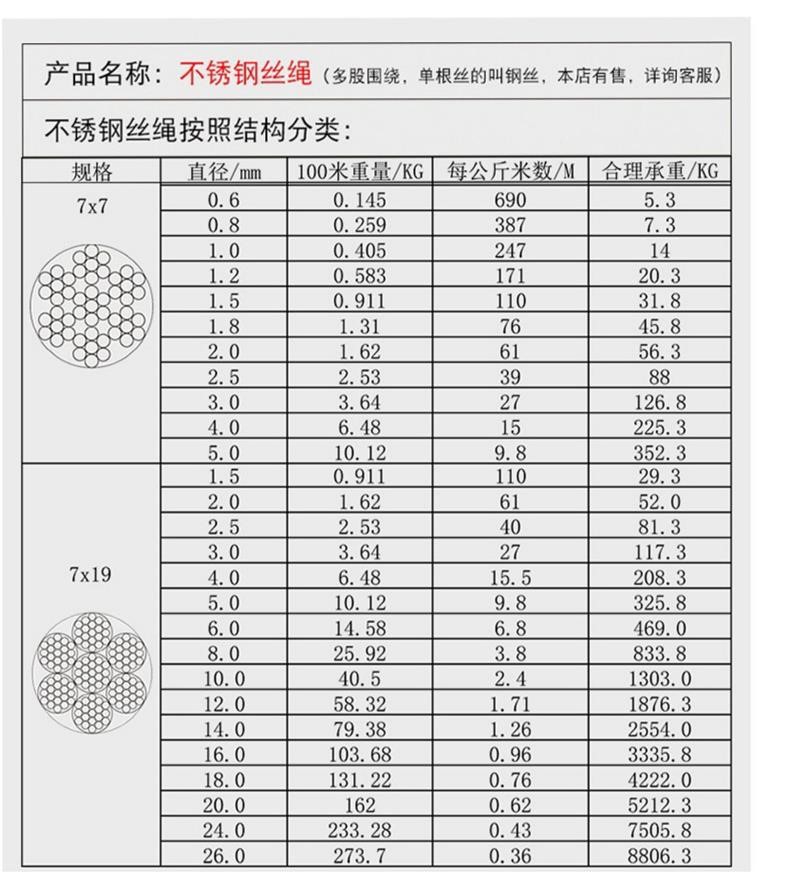 • 304 스테인레스 스틸 2.5mm (7*19 구조/연질) 2m