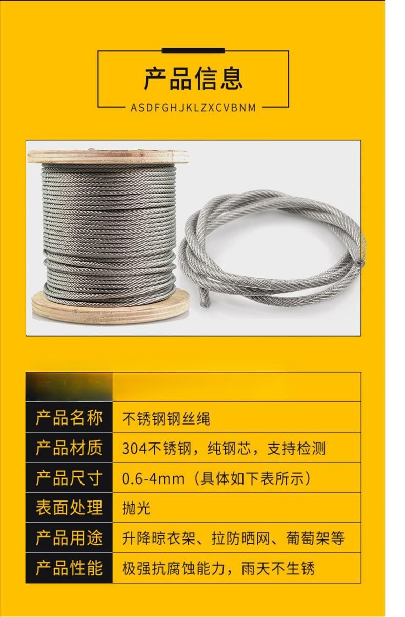 304 스테인레스 스틸 와이어 로프 얇고 부드러운 와이어 빨랫줄 랙 강철 로프 두께 1 1.5 2 3 4 5 6 8mm