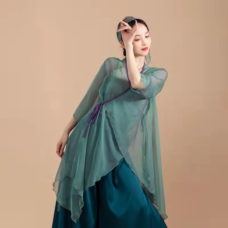클래식 댄스 그린 뱀 댄스 의상 거즈 의류 우아한 화이트 뱀 연습 옷 여성 공연 옷 요정 셔츠 한푸 댄스 옷스토어 가기