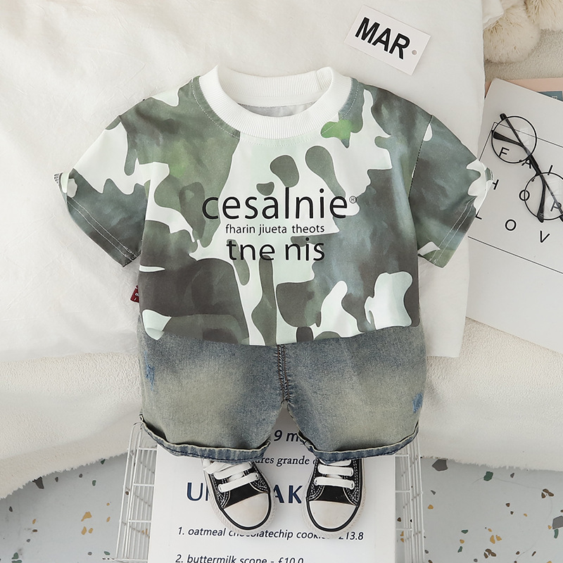 여름 아동복 패션 위장 반팔 세트 0-5 세 국경 대외 무역 어린이 티셔츠 여름 의류 남녀 아동복스토어 가기