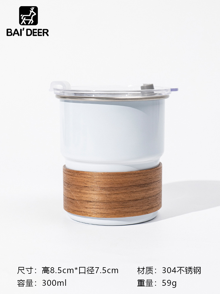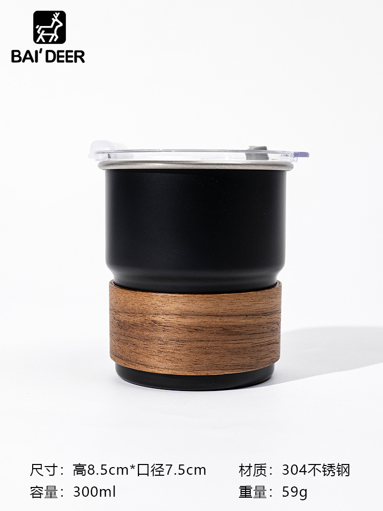 • 스테인레스 스틸 내추럴 컬러 물컵 + 나무뚜껑 + 뚜껑