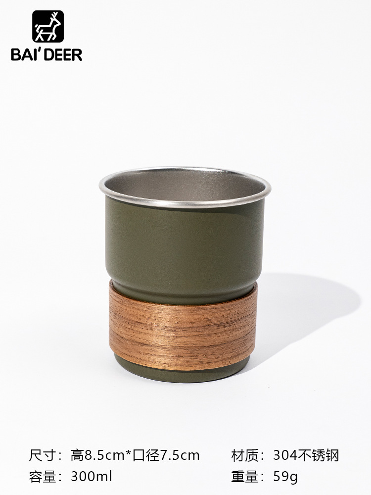 • 육군 녹색 물컵 + 나무 커버 + 뚜껑