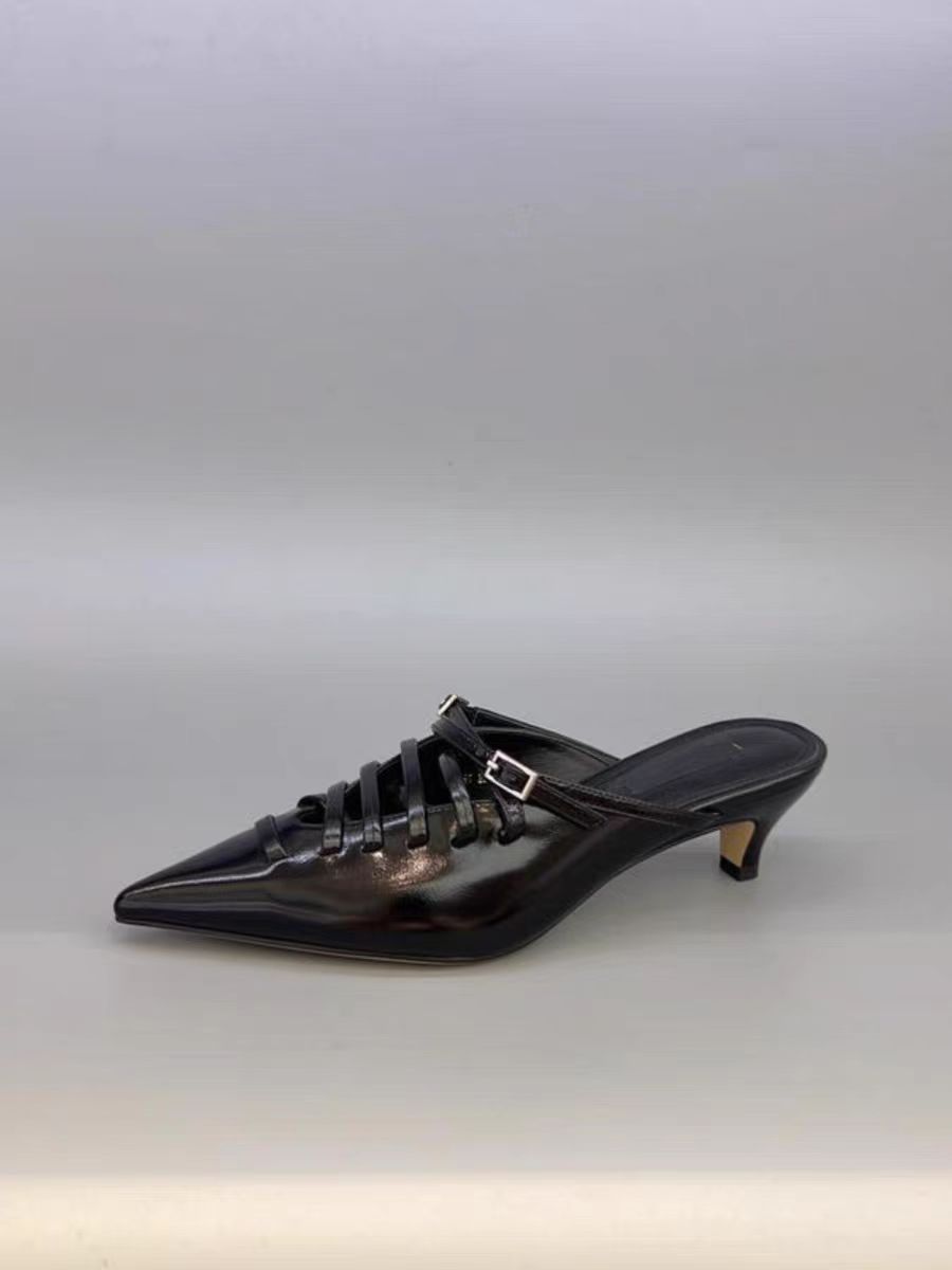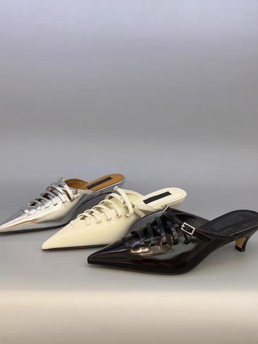 공장 직판 끈 묶는 스타일의 뾰족코 얇은 굽 하이힐, 레오파드 프린트 여성 샌들, 얕은 굽 슬립온, 다리가 길어보이는 디자인스토어 가기