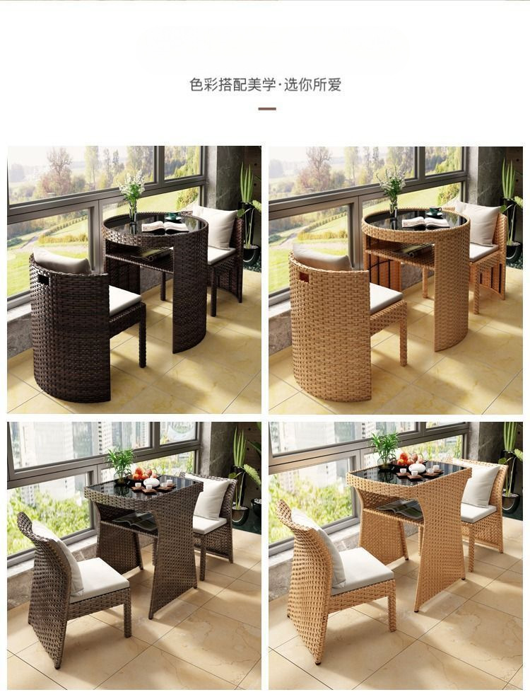 새로운 스타일 발코니 캐주얼 테이블과 의자 조합 등나무 의자 3 개 세트 인터넷-유명한 차 테이블 작은 가구 모방 등나무 의자 커피 테이블스토어 가기