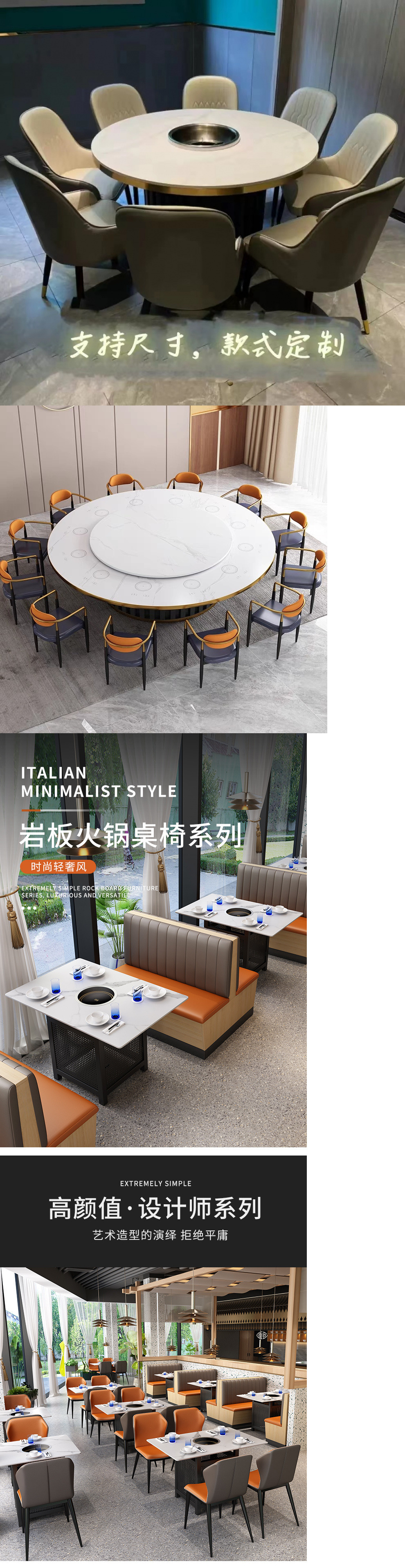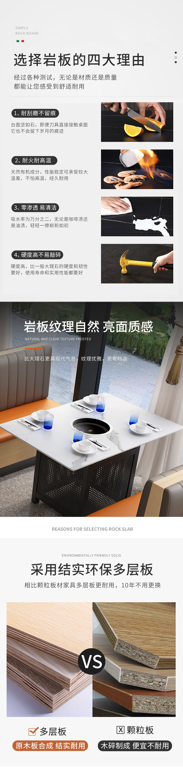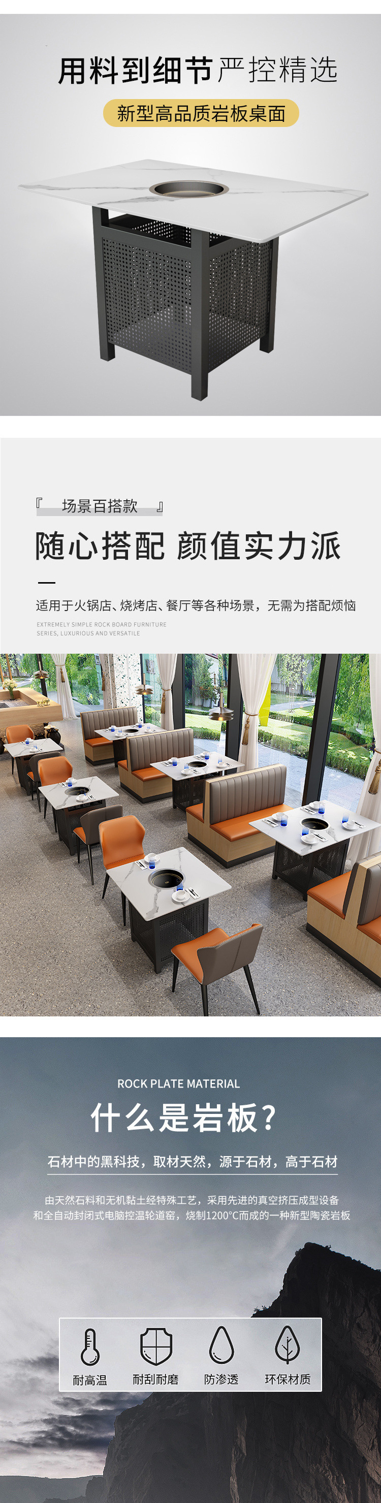 록 슬래브 대리석 핫 팟 테이블 유도 쿠커 상업용 솔리드 우드 통합 바베큐 무연 테이블과 의자 소파 카드 시트 조합스토어 가기