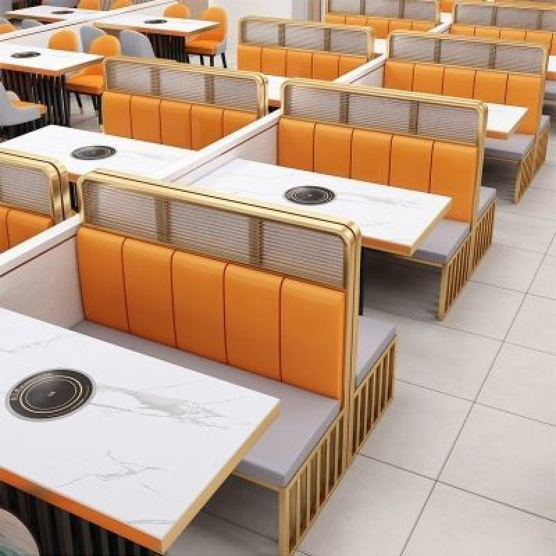 록 슬래브 대리석 핫 팟 테이블 유도 쿠커 상업용 솔리드 우드 통합 바베큐 무연 테이블과 의자 소파 카드 시트 조합