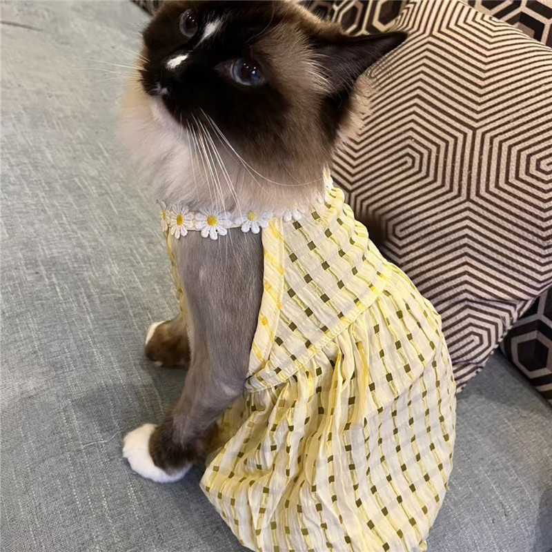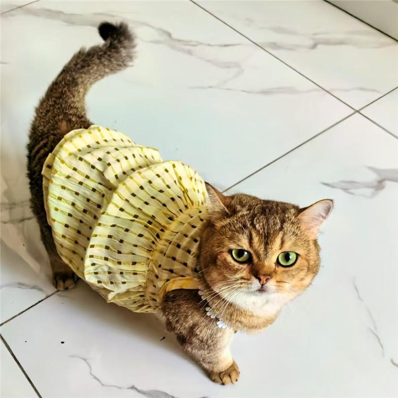 고양이 여름 옷 작은 원피스 모피 귀여운 Ins 골드 점진적 머펫 고양이 짧은 여름 슬링 스커트스토어 가기