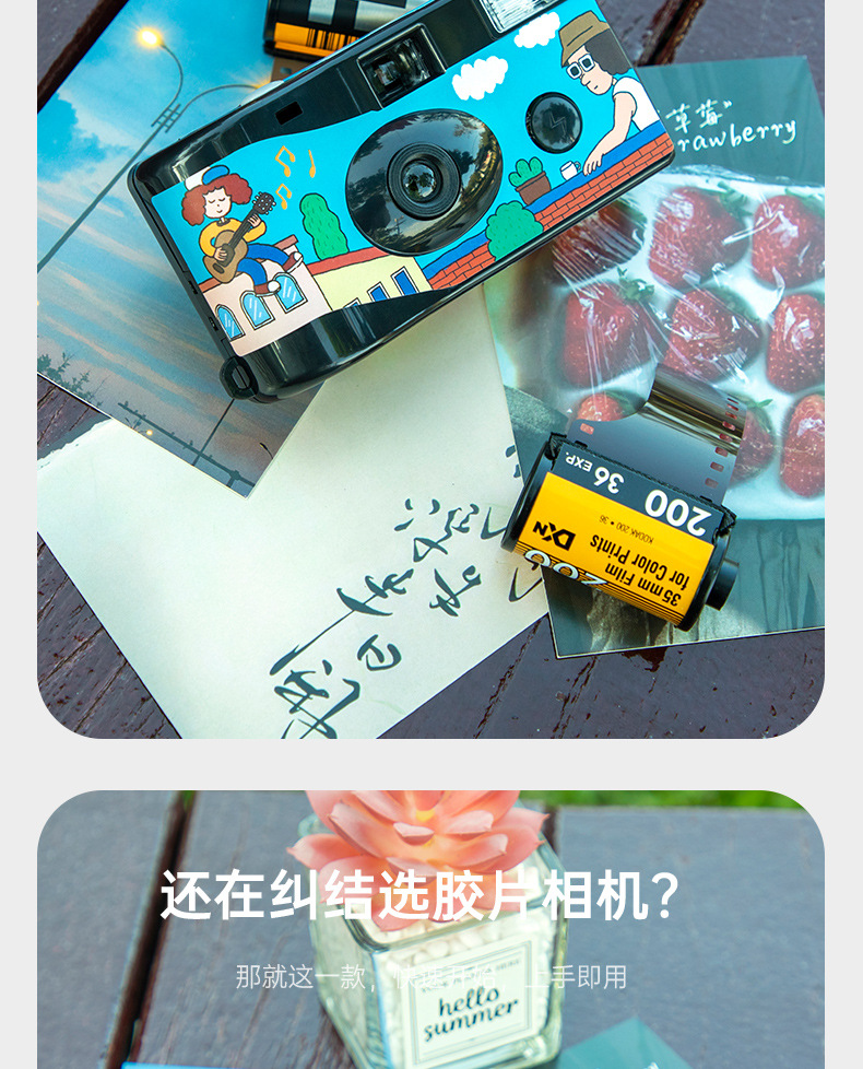 재고 일러스트 "사랑의 삶" 일회용 필름 바보 카메라 컬러 하프 그리드 36 재미있는 미니스토어 가기